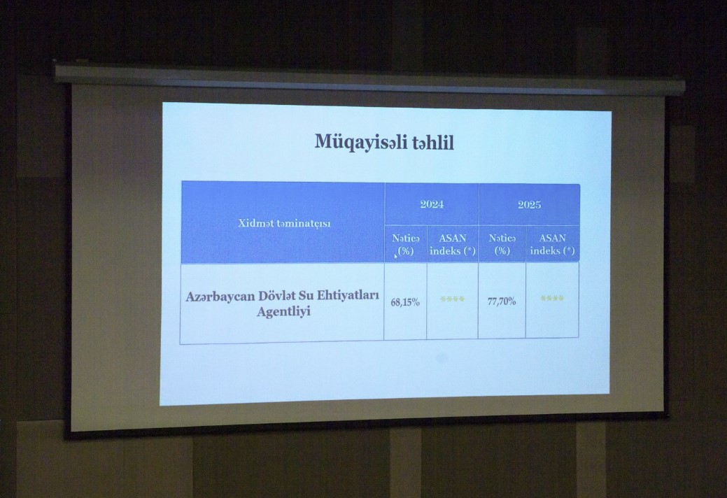 Qiymətləndirmə nəticələrinə əsasən, Azərbaycan Dövlət Su Ehtiyatları Agentliyi ASAN Xidmət indeksi üzrə 77,7% nəticə ilə 2-ci yerə, İri Şəhərlərin Birləşmiş Su Təchizatı Xidməti isə “ASAN müraciət” informasiya sistemi üzrə daxil olan müraciətlərin icra vəziyyətinə görə 53,4% nəticə ilə 2-ci yerə layiq görülüb.