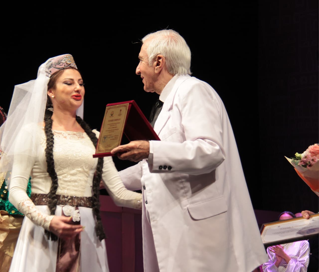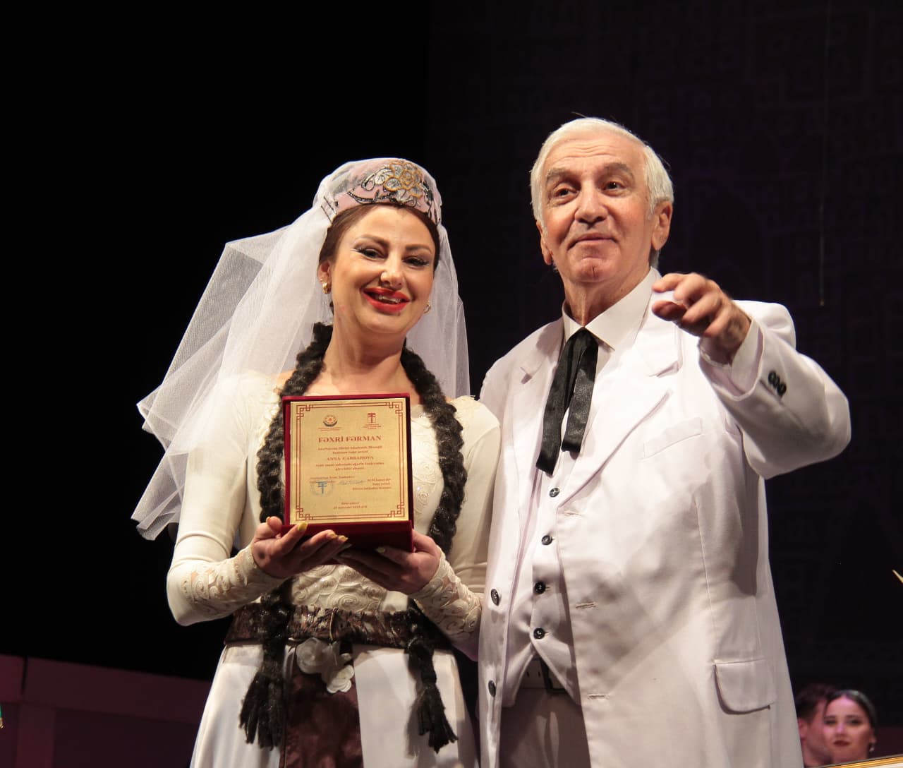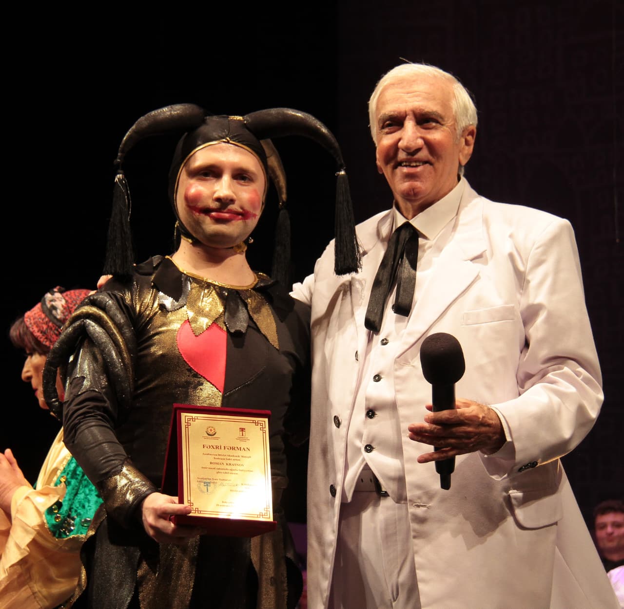 Alqışlarla keçən tamaşanın sonunda Xalq artisti, Azərbaycan Teatr Xadimləri İttifaqının sədr müavini İlham Namiq Kamal teatrın balet artistləri Roman Krasnov və Anna Cabbarovanı səhnəyə dəvət edərək, onları teatr sahəsindəki 20 illik səmərəli fəaliyyətləri münasibəti ilə təbrik edib. Sənətkar ittifaq və teatr rəhbərliyi tərəfindən verilən fəxri fərmanları onlara təqdim edib.