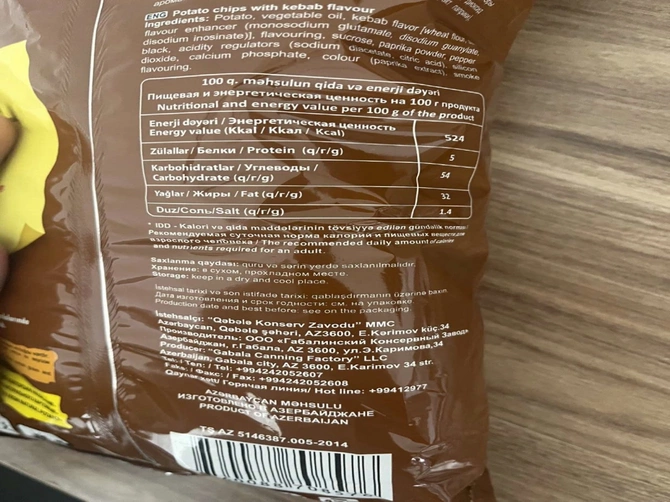 Azərbaycan Qida Təhlükəsizliyi Agentliyi “Chipsim Kabab”, “Chipsim Tomat” və “Rekord” qablaşdırılmış qidaları satışdan çıxarıb. Səbəb sözügedən məhsulların tərkibində E-621 qida əlavəsinin normadan artıq olması olub.