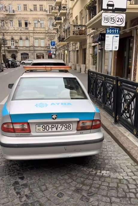 Tribuna.az xəbər verir ki, AYNA əməkdaşlarının özbaşınalığı ilə bağlı video çəkən şəxs bildirib ki, o özü həmin yerdə avtomobil saxlayan zaman cərimələnib. Ancaq AYNA əməkdaşları qadağan olan yerdə xidməti avtomobillərini park edərək qayda pozur: