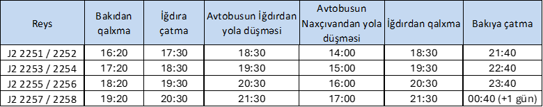 Bakı-İğdır-Bakı marşrutu üzrə növbəti reyslərin – Cədvəli