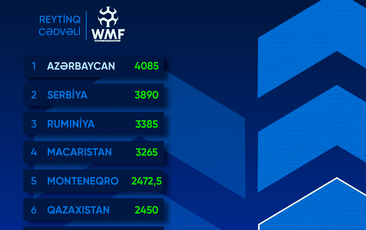 Tribuna.az xəbər verir ki, siyahının ilk pilləsində son dünya çempionatının qalibi olan Azərbaycan millisi qərarlaşıb. 4085 xal toplayan komandamız tarixində ilk dəfə olaraq bu uğura imza atıb.