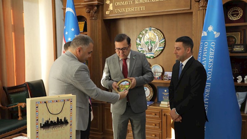 Görüşün sonunda Özbəkistanın Dövlət Jurnalistika və İnnovativ Kommunikasiyalar Universitetinin rektoru Şirzadxan Qüdrətxocayevə Azərbaycanla bağlı xatirə hədiyyəsi təqdim olunub.