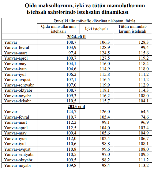 Tribuna.az xəbər verir ki, bu məlumatlar Dövlət Statistika Komitəsinin (DSK) rəsmi göstəricilərində yer alıb.