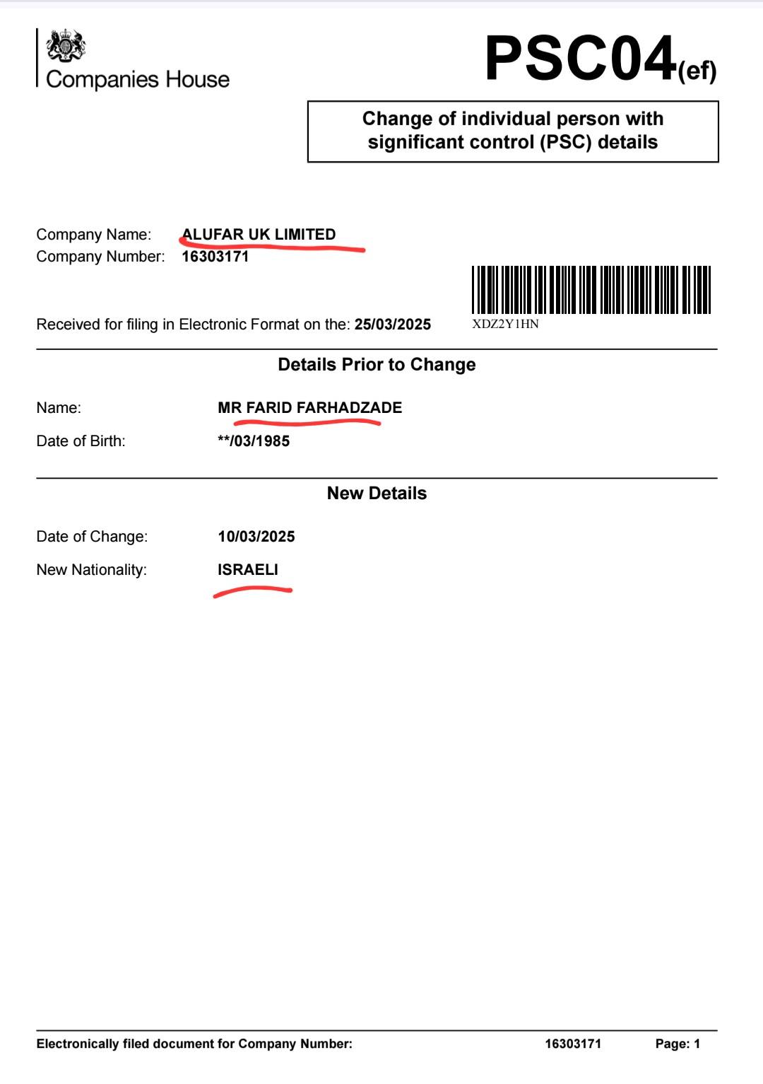 O bildirib ki, Fərid Fərhadzadə bu ilin martında ad gününə özəl olaraq Londonda ALUFAR UK LIMITED şirkətini qeydiyyatdan keçirib. “Sənədlərə görə şirkətin direktoru Vüqar Axundov adlı şəxsdir, benefissiarı isə Fərid Fərhadzadədir”.