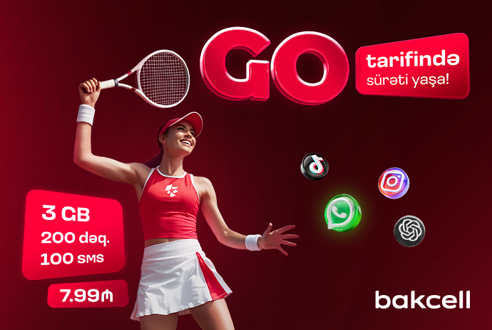 İnnovasiya lideri “Bakcell” danışıq dəqiqələri, internet, SMS paketləri, rouminq və digər üstünlüklərlə bol yeni “GO” tariflərini təqdim edir. 0.99 AZN-dən başlayan “Go” tariflərindən birinə qoşulmaqla abunəçilər, həmçinin “WhatsApp”, “Facebook”, “Instagram”, “TikTok” və “YouTube” platformalarında istifadə üçün əlavə internet bonusları əldə edəcəklər.