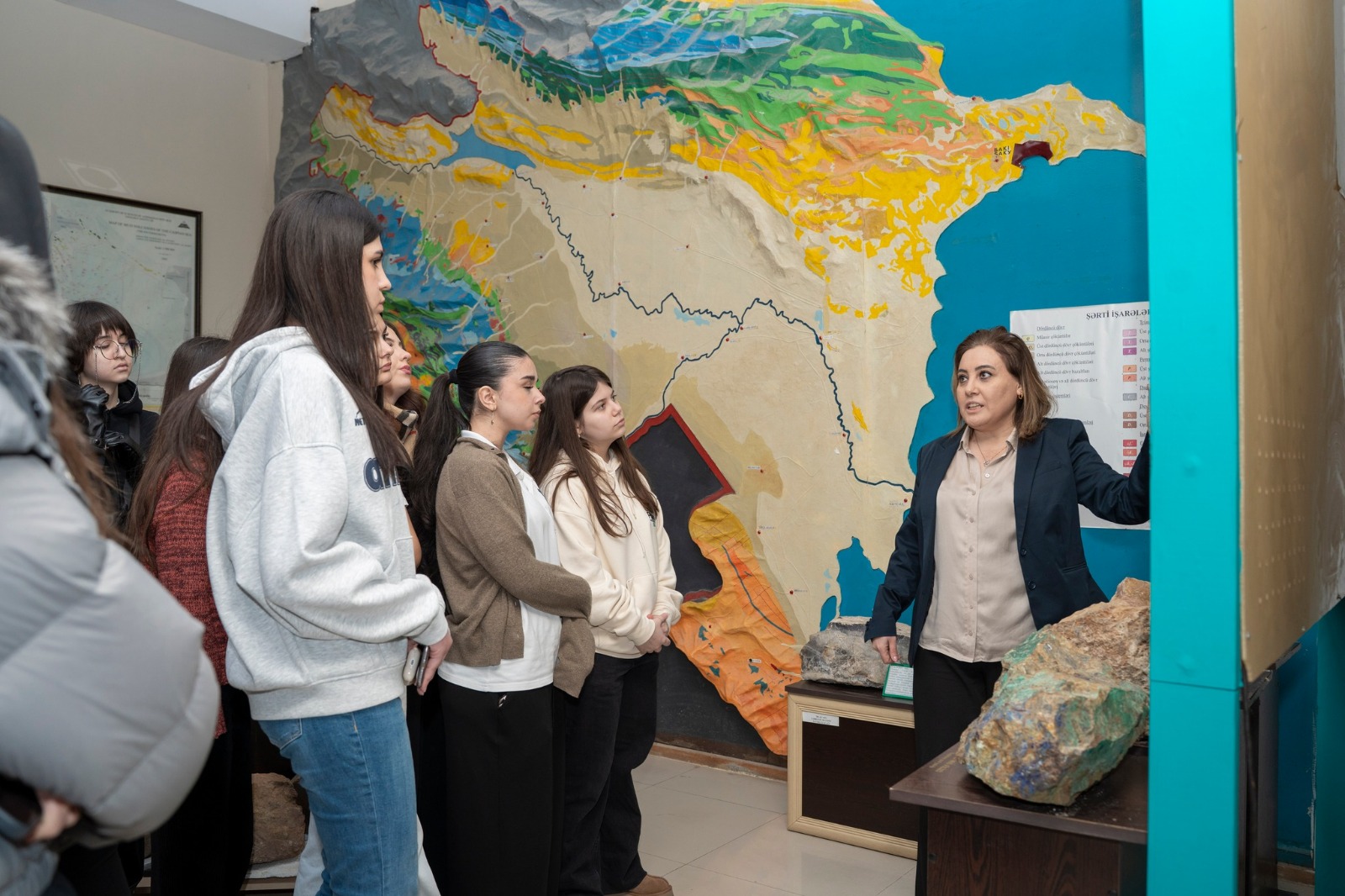 Tədbirin davamı olaraq şagirdlər Ekologiya və Təbii Sərvətlər Nazirliyinin Dövlət Geoloji İnformasiya Fondunun tabeliyində fəaliyyət göstərən Azərbaycan geologiya muzeyinə baxış keçirib, süxurlar, mineral və filiz nümunələri ilə tanış olublar.