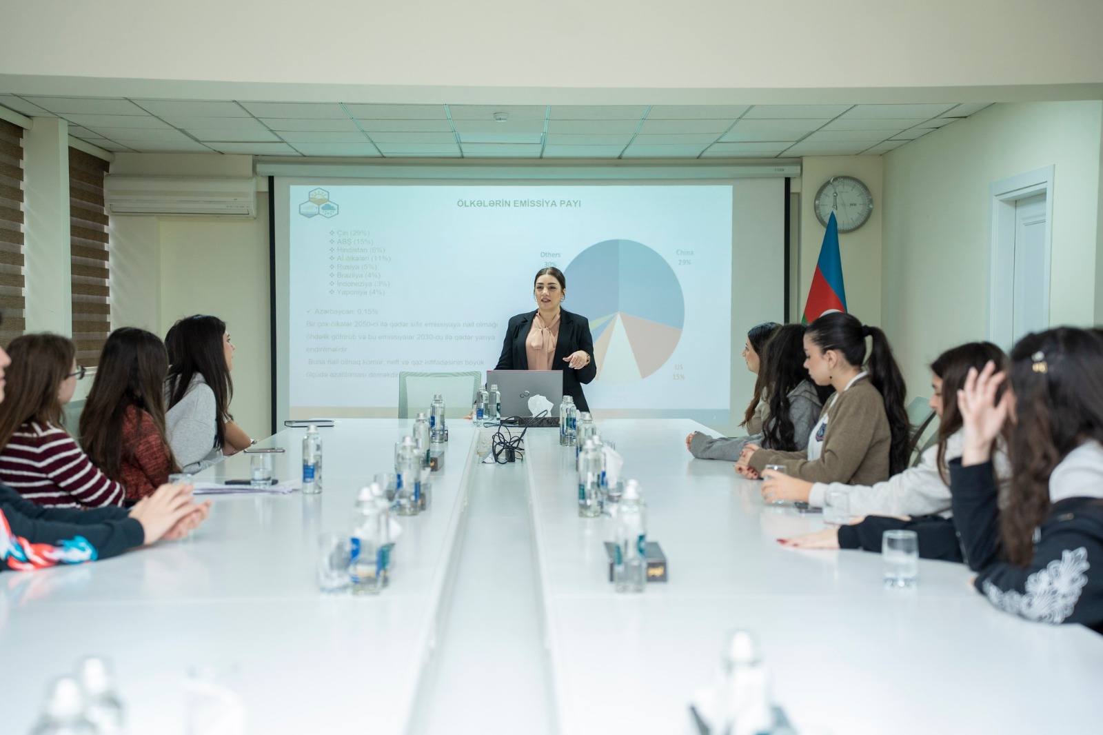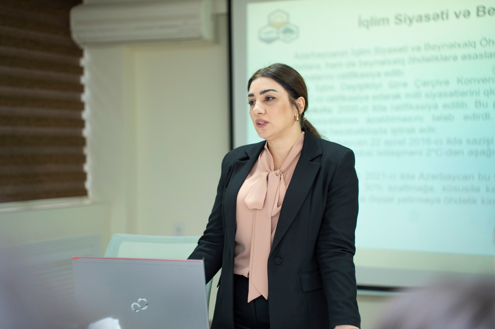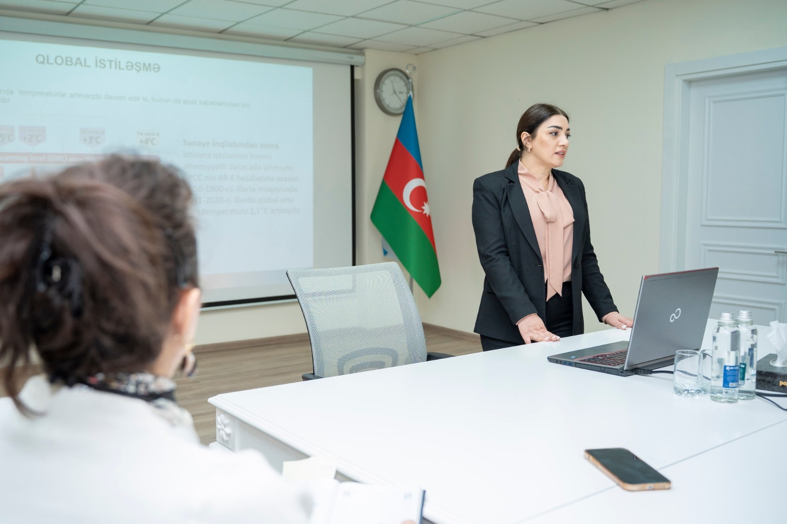 Daha sonra Ekoloji siyasət şöbəsinin müdir müavini Yaşar Kərimov tərəfindən ətraf mühitin mühafizəsi, ölkənin ekoloji siyasəti, həyata keçirilən dövlət proqramları barədə məlumatlar verilib, dünya təcrübəsi diqqətə çatdırılıb.