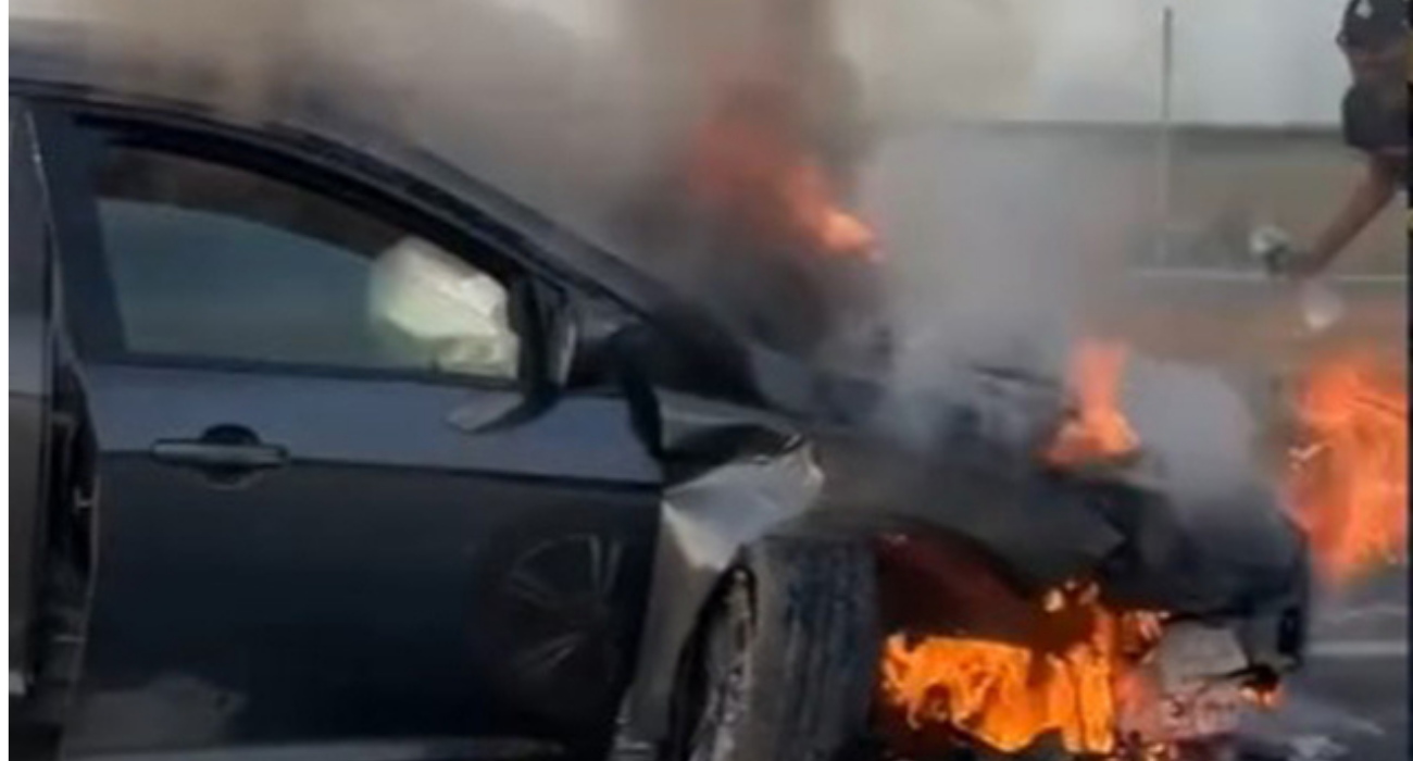 Yanan avtomobil tamamilə yararsız hala düşüb.
