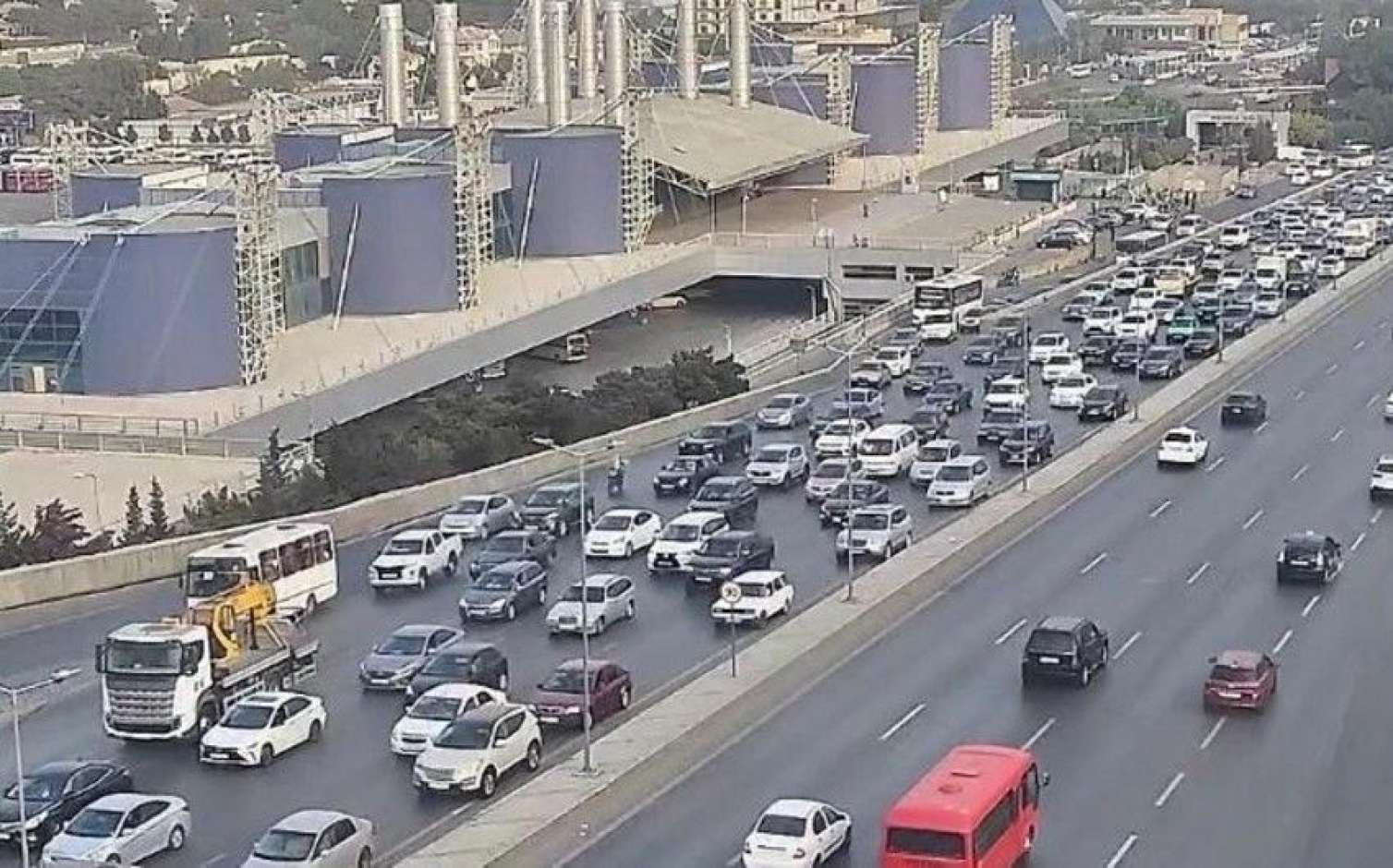 Bakının bir sıra yollarında nəqliyyatın sıxlığı müşahidə olunur.