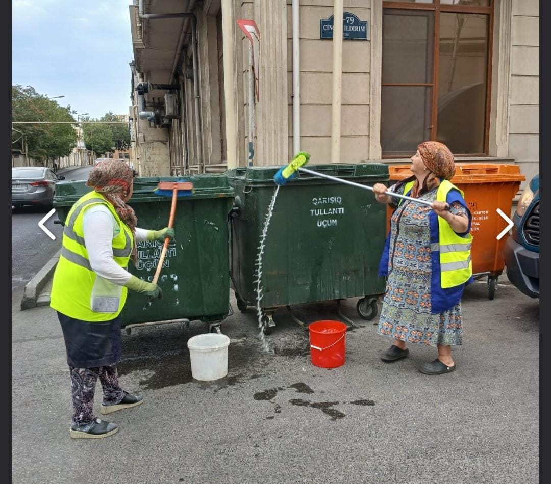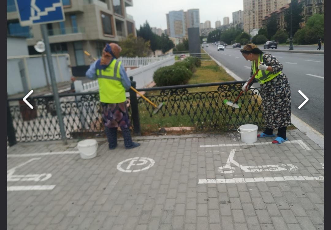 İməcilikdə rayonun kommunal təsərrüfat işçisi olan yaşlı qadınlar ərazidə təmizlik işləri aparılıb, prospekt və küçələrdə yolları, səki kənarlarını, bina fasadlarını, vitrinləri, işıq dirəklərini, yol kənarındakı məhəccərlər, məişət tullantıları konteynerlərinin üstünü, ətrafını yuyublar. Halbuki bu işləri yaşlı qadınlara deyil, kişlərə gördürmək daha yaxşı olardı.