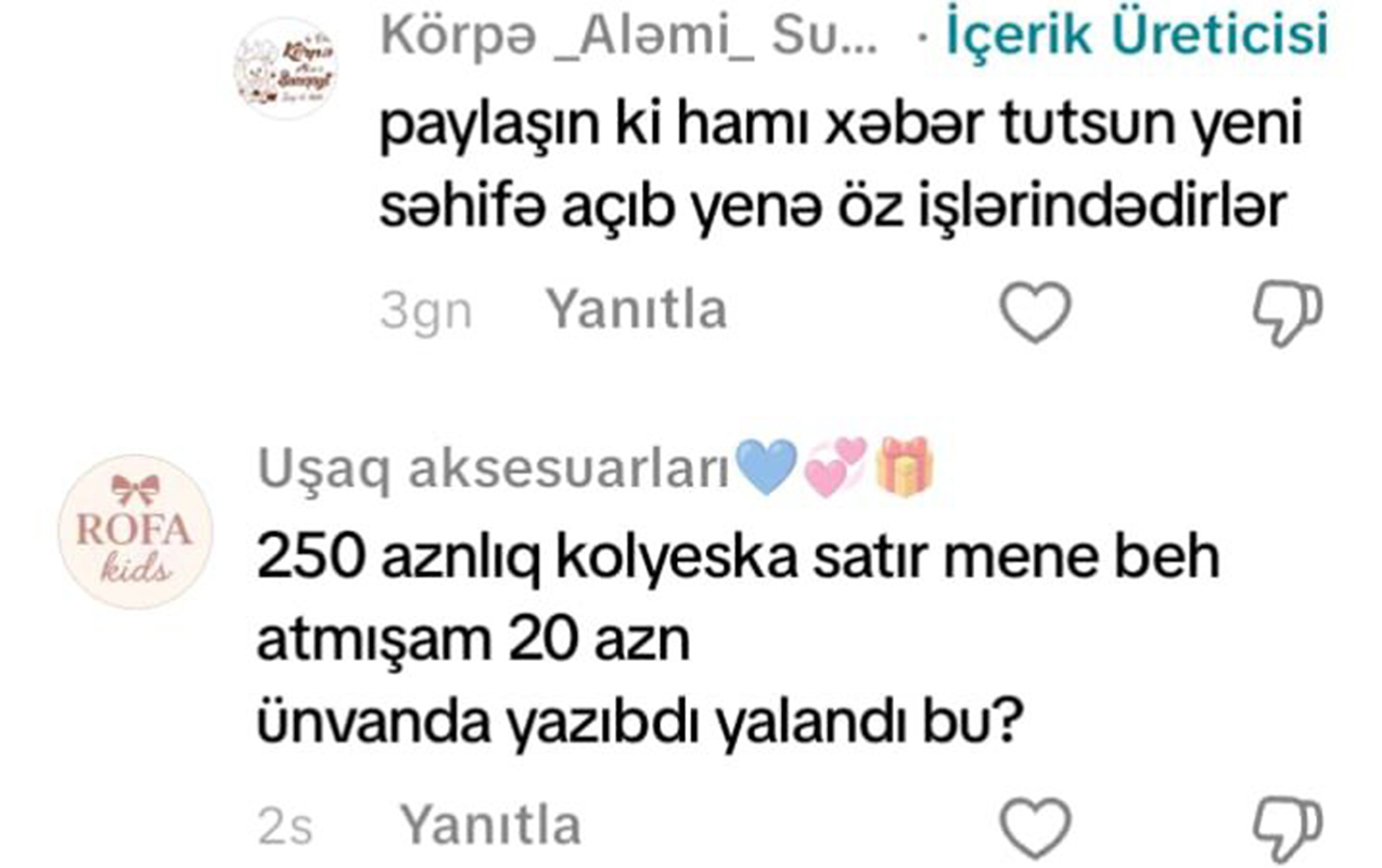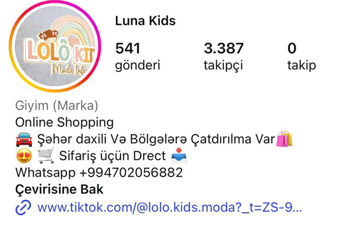 “TikTok” və instaqram üzərindən uşaq geyimlərinin satışını həyata keçirən “Lolo.kids.moda_” səhifəsi dələduzluqla məşğuldur”.