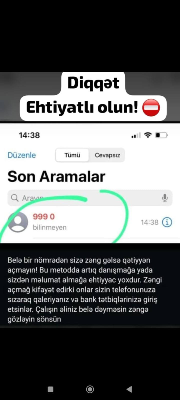 Məlumatlara əsasən, bu tip zənglər əsasən “777 0” və ya “999 0” formatlı nömrələrdən edilir.