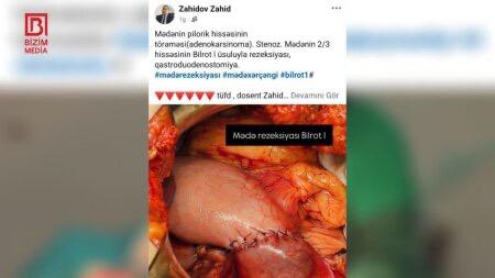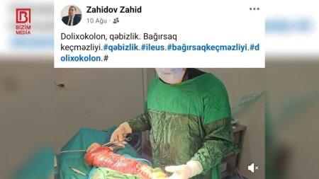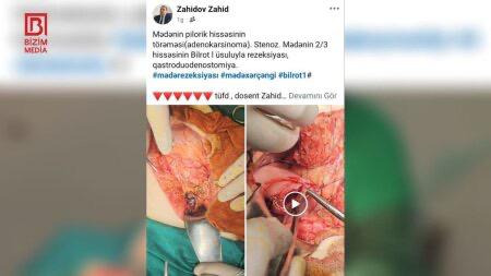 Tribuna.az Bizim.Media-ya istinadən xəbər verir ki, bu cür hallardan biri də Respublika Klinik Xəstəxanasının ümumi cərrahı, eləcə də Davinci International Hospitalın həkimi Zahid Zahidovun həssas əməliyyat görüntülərini sosial şəbəkə hesabında açıq şəkildə yayımlaması ilə bağlıdır.