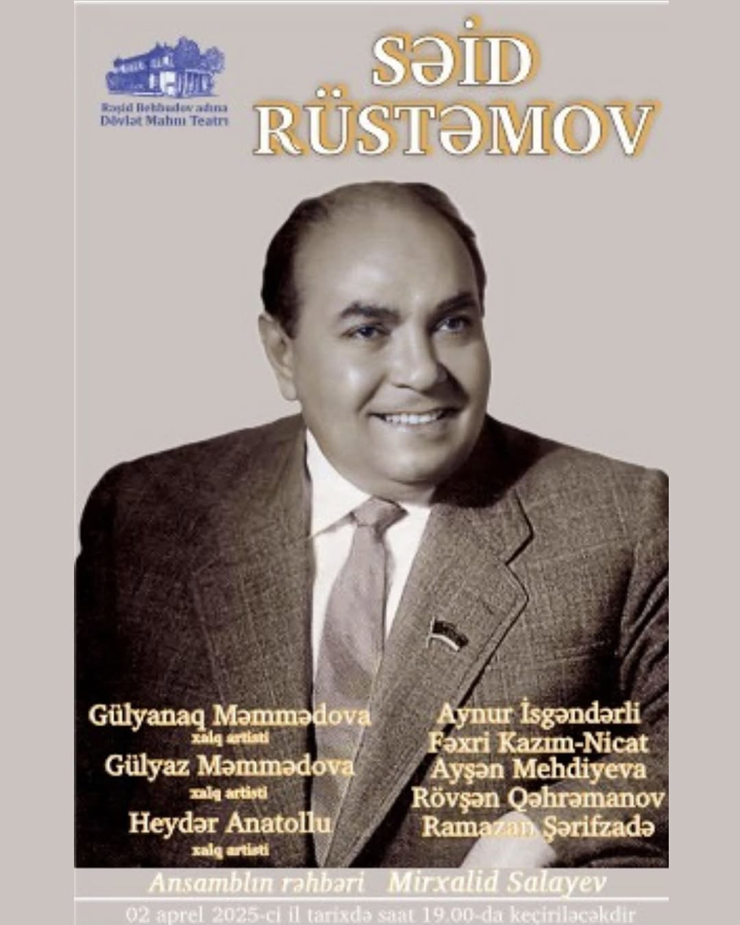Tribuna.az xəbər verir ki, aprelin 2-də Rəşid Behbudov adına Dövlət Mahnı Teatrında görkəmli bəstəkar, Xalq artisti Səid Rüstəmovun mahnılarından ibarət konsert proqramı keçirilib. Konsertdə sənətşünaslıq üzrə fəlsəfə doktoru Səadət Təhmirazqızı çıxış edərək Səid Rüstəmovun həyat və yaradıcılığından danışıb. Gecədə Xalq artistləri Gülyaz və Gülyanaq Məmmədovalar, Heydər Anatollu, solistlər Fəxri Kazım Nicat, Ayşən Mehdiyeva, Aynur İsgəndərli, Rövşən Qəhrəmanov ifaçılar Ramazan Şərifzadə və Nəzrin Əliyeva bəstəkarın bir-birindən gözəl, qəlbə yatan və unudulmaz mahnılarını ifa ediblər. Solistləri teatrın ansamblı (rəhbər Mirxalid Salayev) müşayiət edib.