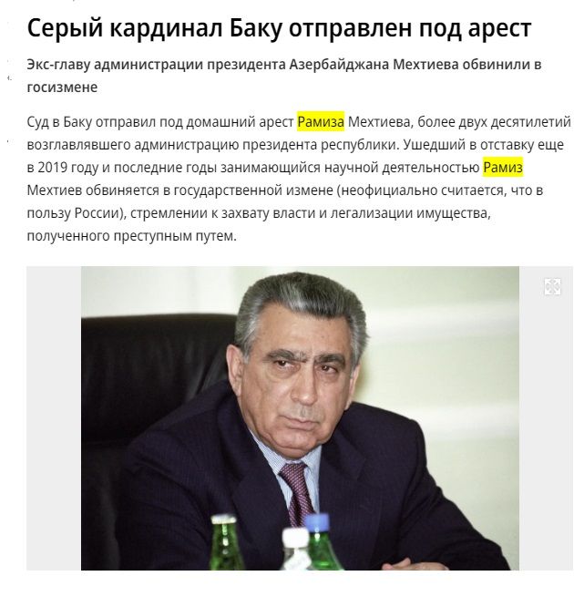 Müəllif Azərbaycan mediasında yayılan məlumatları əsas götürərək, qeyd edir ki, “Mehdiyev Moskvanın maraqlarına xidmət etməkdə şübhəli bilinir”.
