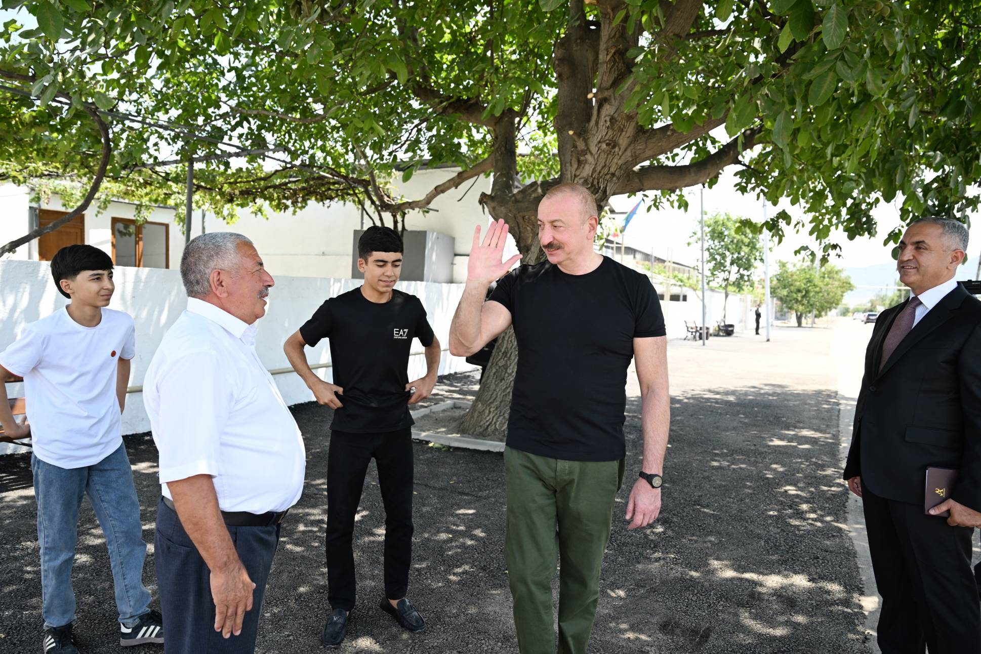 Tribuna.az xəbər verir ki, dövlətimizin başçısı əvvəlcə kəndə köçən Məhəmməd Fərəcovun evinə baş çəkib.