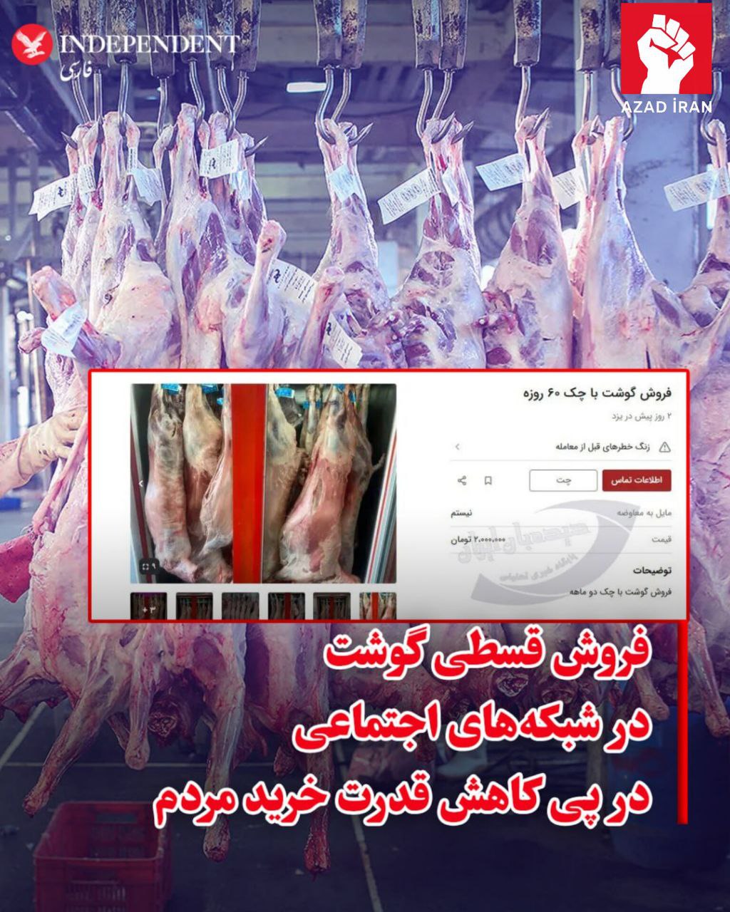 Bildirilib ki, İranda media orqanları insanların alıcılıq qabiliyyətinin azalmasından sonra sosial mediada ətin hissəli ödənişlə satışı barədə məlumat verirlər: