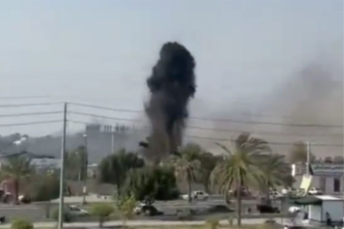 Kadrlarda raketin məktəb binasına düşdüyü və bundan sonra binanın üzərinə qara tüstünün qalxdığı görünür.