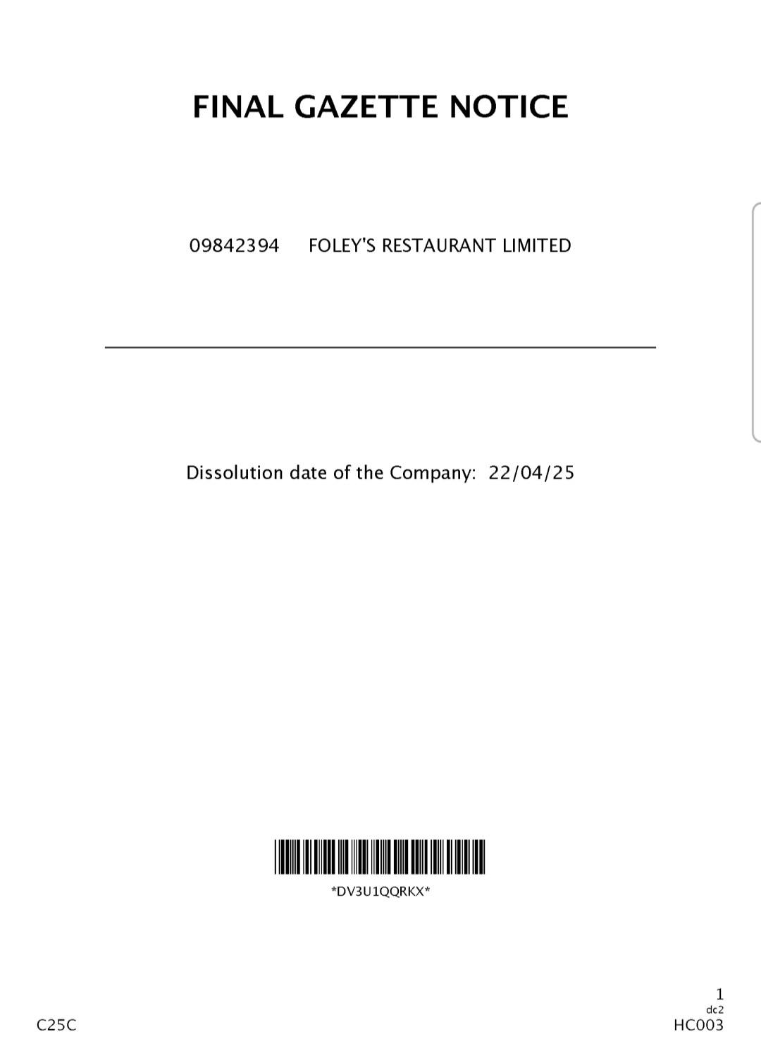 O qeyd edib ki, “LONDON GASTRONOMY GROUP LTD” şirkəti onun vəzifədən azad edilməsindən cəmi 6 gün sonra ləğv edilib. “FOLEY’S RESTAURANT LIMITED şirkəti və eyniadlı lüks restoranın fəaliyyətinə isə bu ilin aprelində iflas qərarı ilə son verilib”.