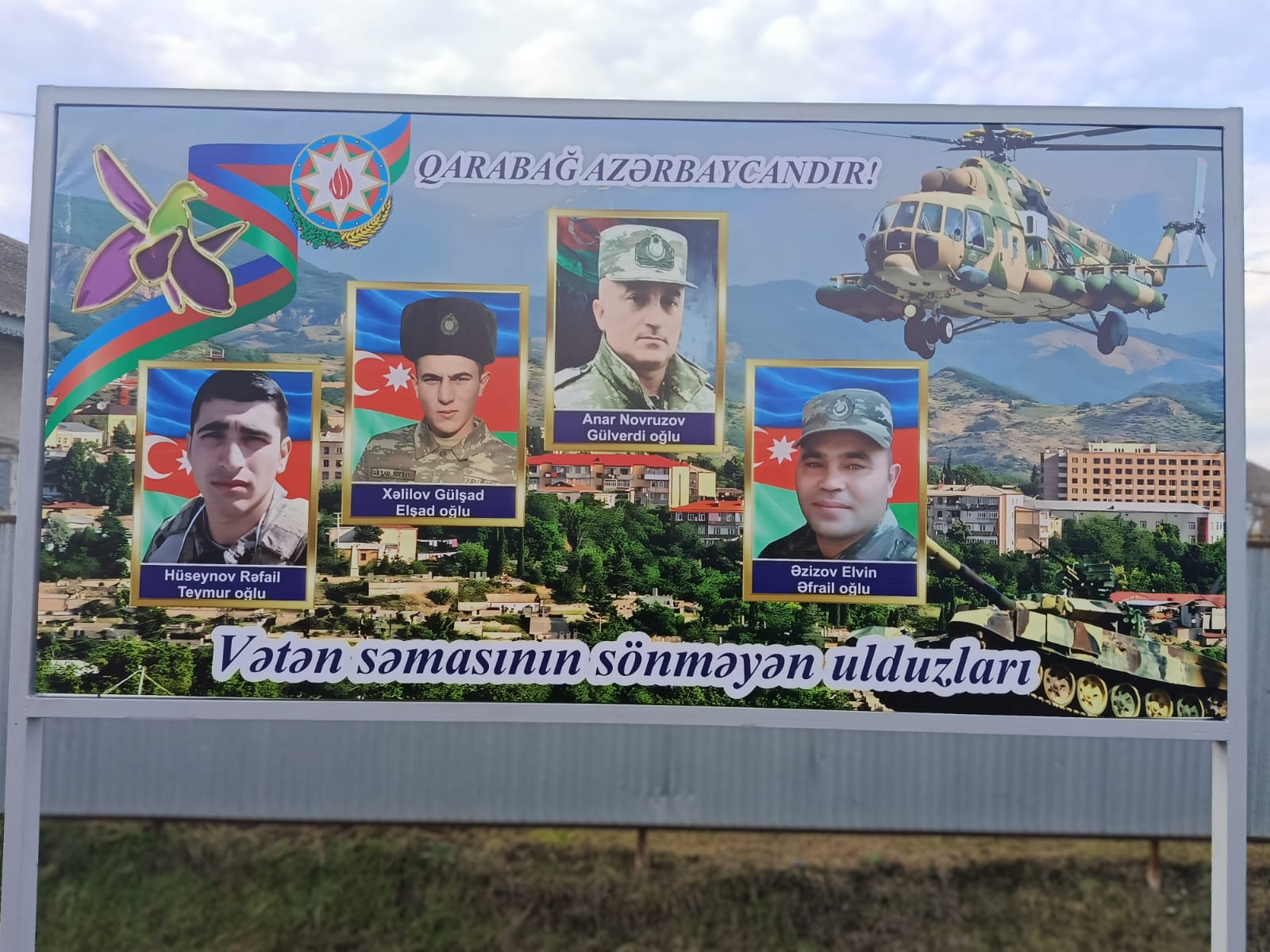 Demokratiyanın və Milli Dəyərlərin Təbliği İctimai Birliyinin (İB) üzvləri Masallı rayonunun Qarğalıq kəndində Azərbaycan Ordusunun səngər generalı, Azərbaycanın Milli Qəhrəmanı, şəhid Polad Həşimovun fotosunun əhatəsində 44 günlük Vətən müharibəsində Qarğalıq ərazi nümayəndəliyindən şəhid olmuş Əzizov Elvin Əfrail oğlu, Hüseynov Rəfail Teymur oğlu və Xəlilov Gülşad Elşad oğlunun və eləcədə fəxrimiz Anar Novruzovun fotoları əks olunan baner vurublar.