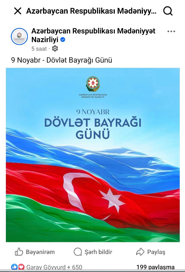 Qeyd edək ki, 9 Noyabr Azərbaycanda Bayraq Günüdür.