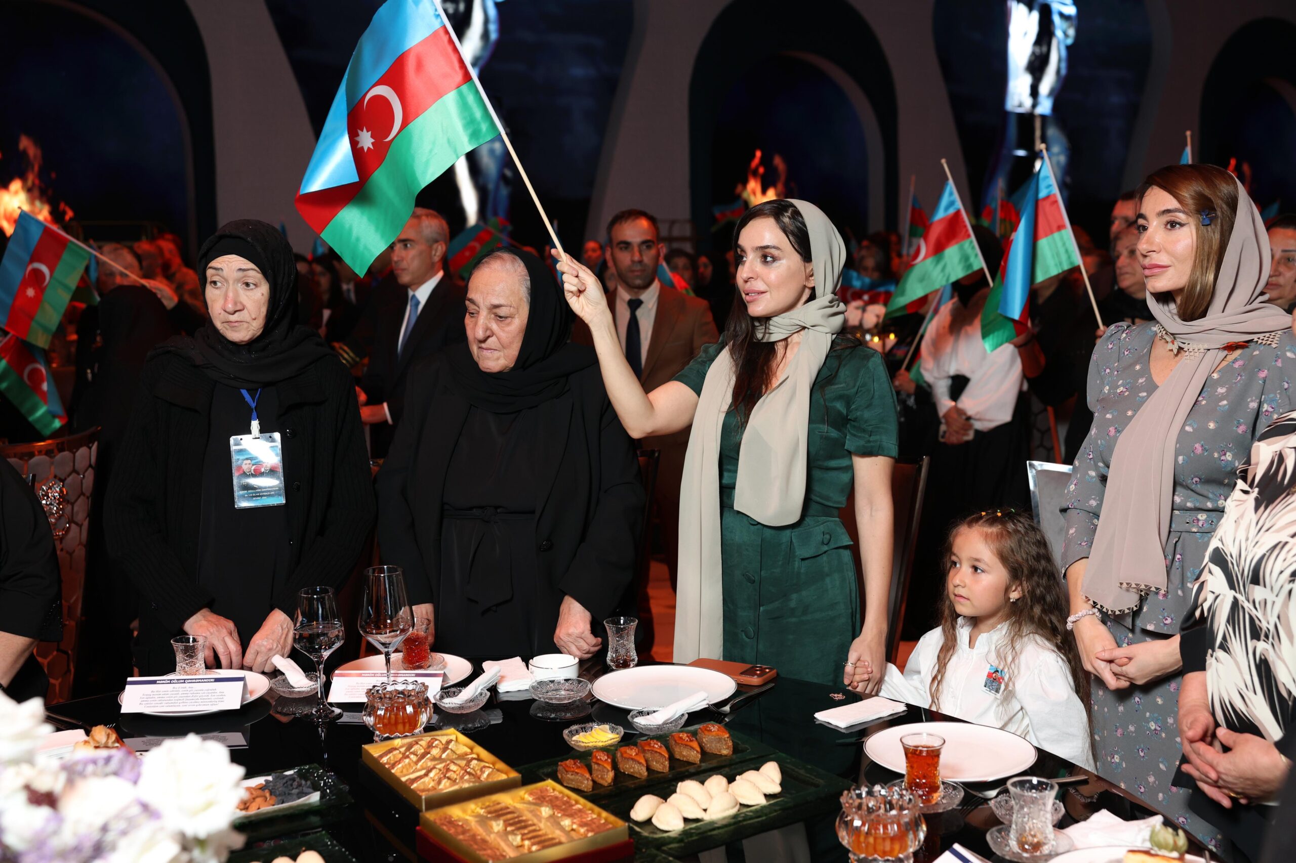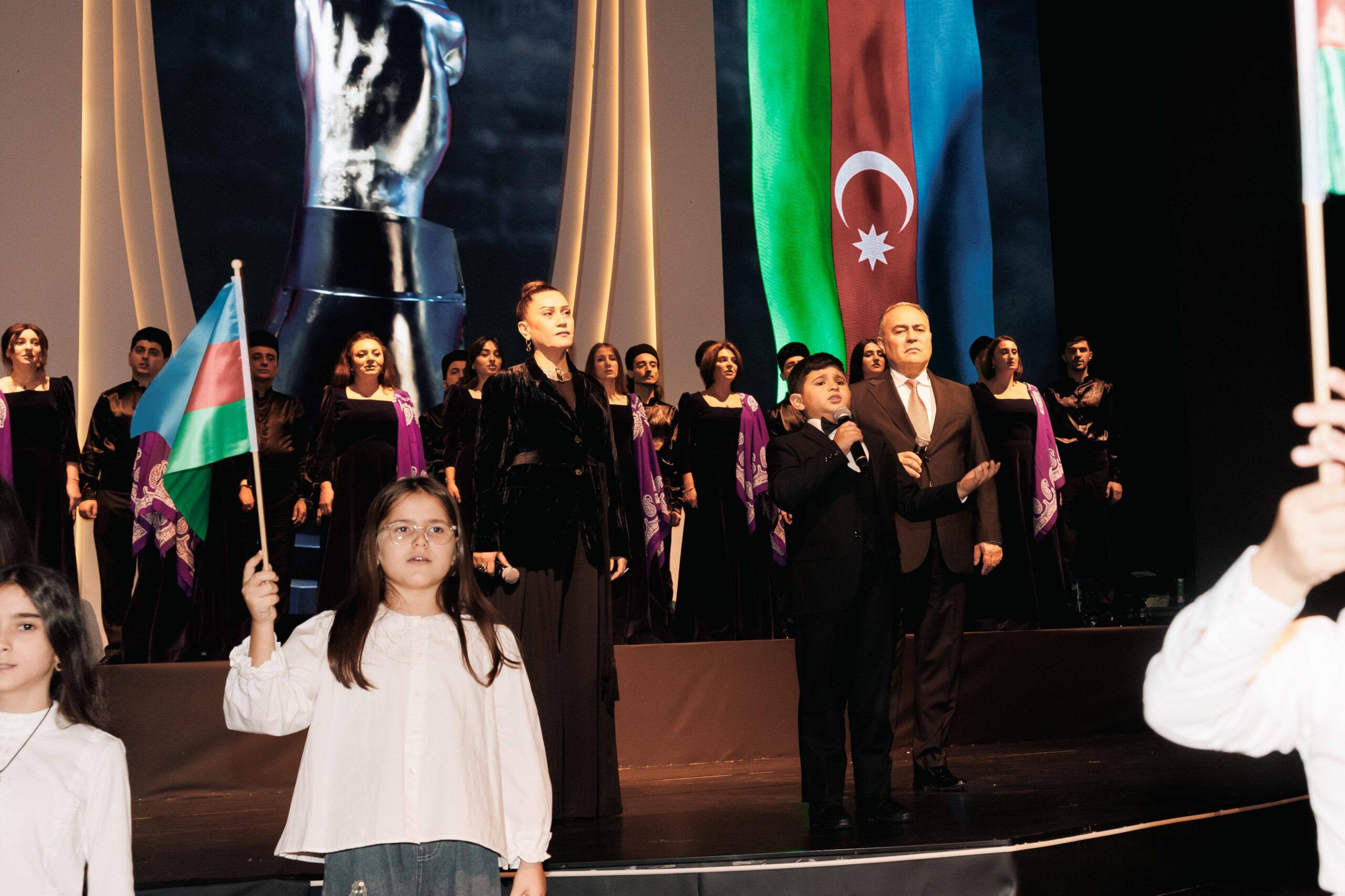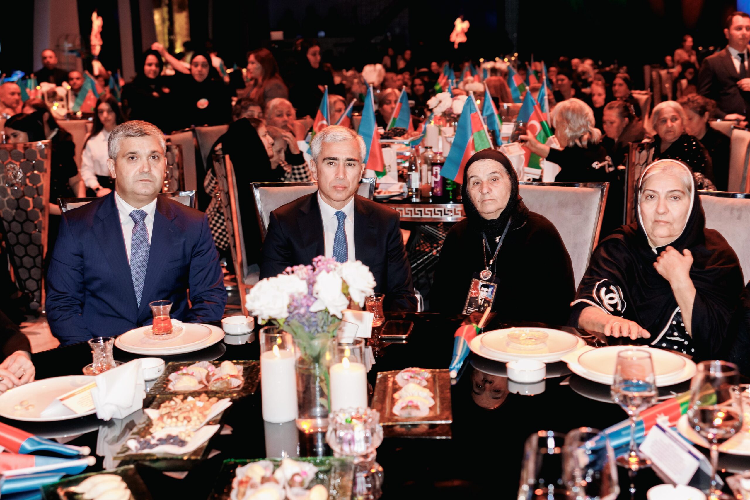 Tədbir iştirakçıları — şəhid anaları, qazilər və qonaqlar əllərində üçrəngli Azərbaycan bayrağını qaldıraraq ayağa qalxdılar. Mahnının sədaları altında zalı qürur, minnətdarlıq və Vətən sevgisi bürüdü.