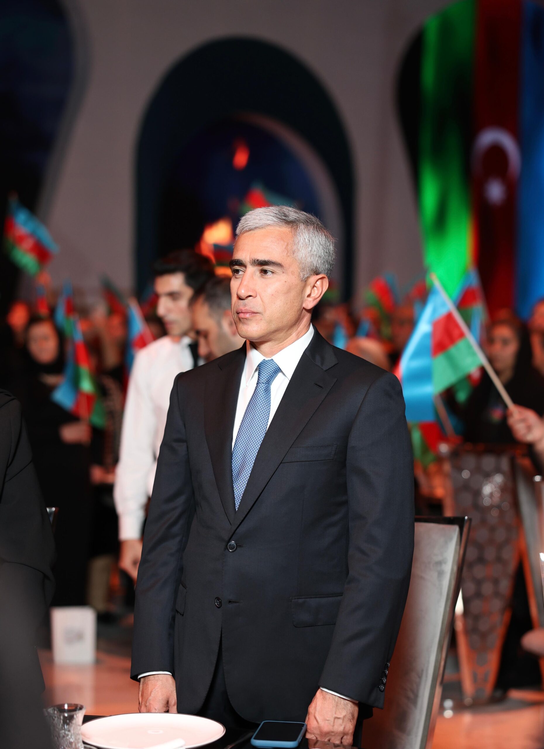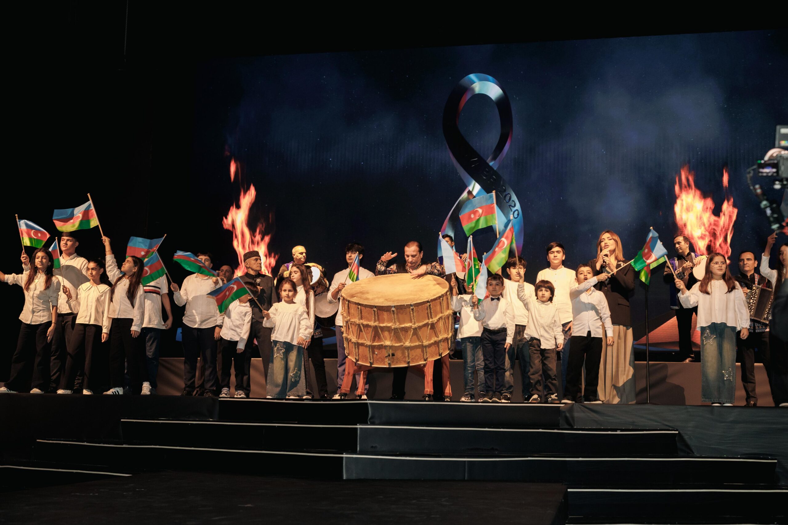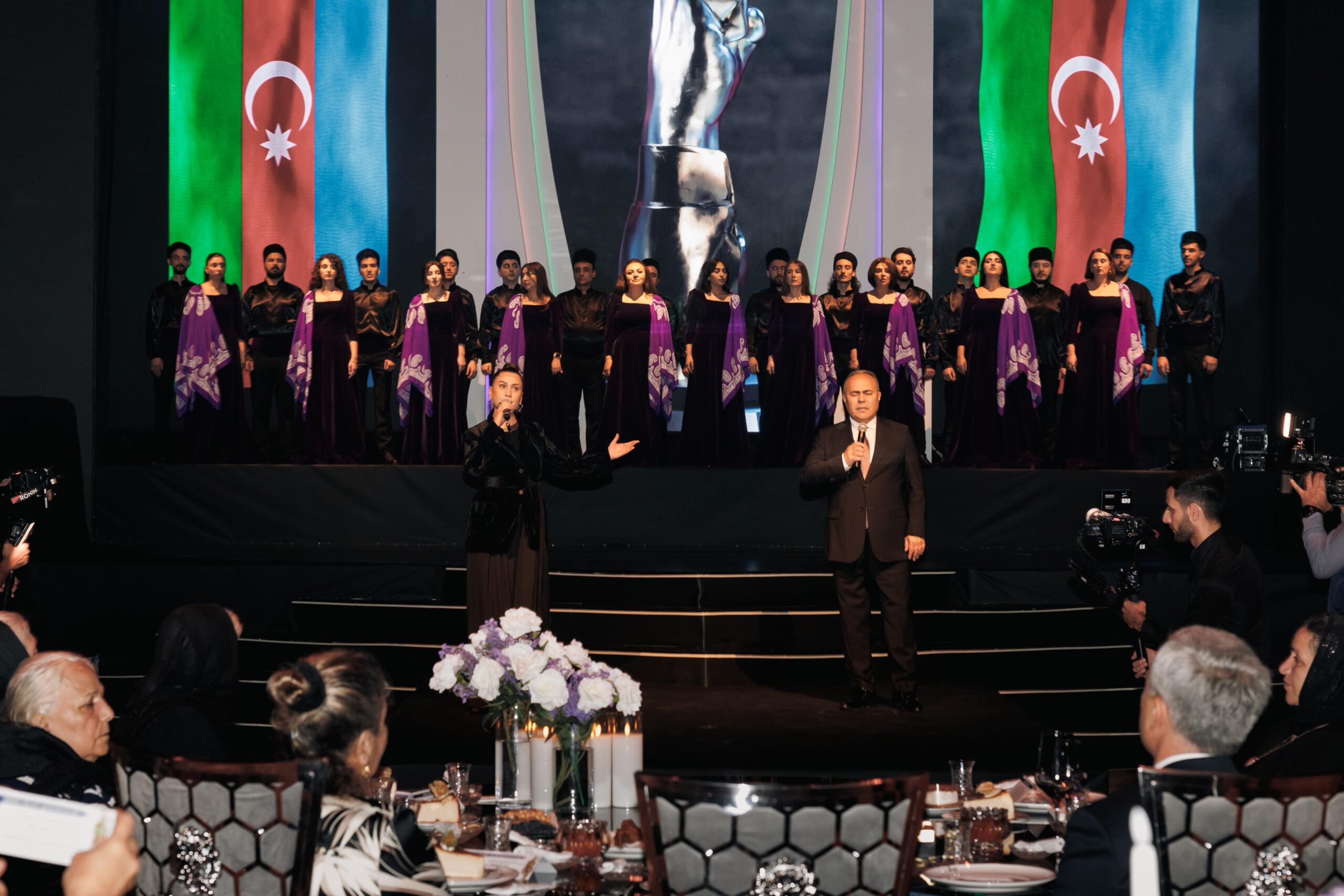 Tədbir iştirakçıları — şəhid anaları, qazilər və qonaqlar əllərində üçrəngli Azərbaycan bayrağını qaldıraraq ayağa qalxdılar. Mahnının sədaları altında zalı qürur, minnətdarlıq və Vətən sevgisi bürüdü.