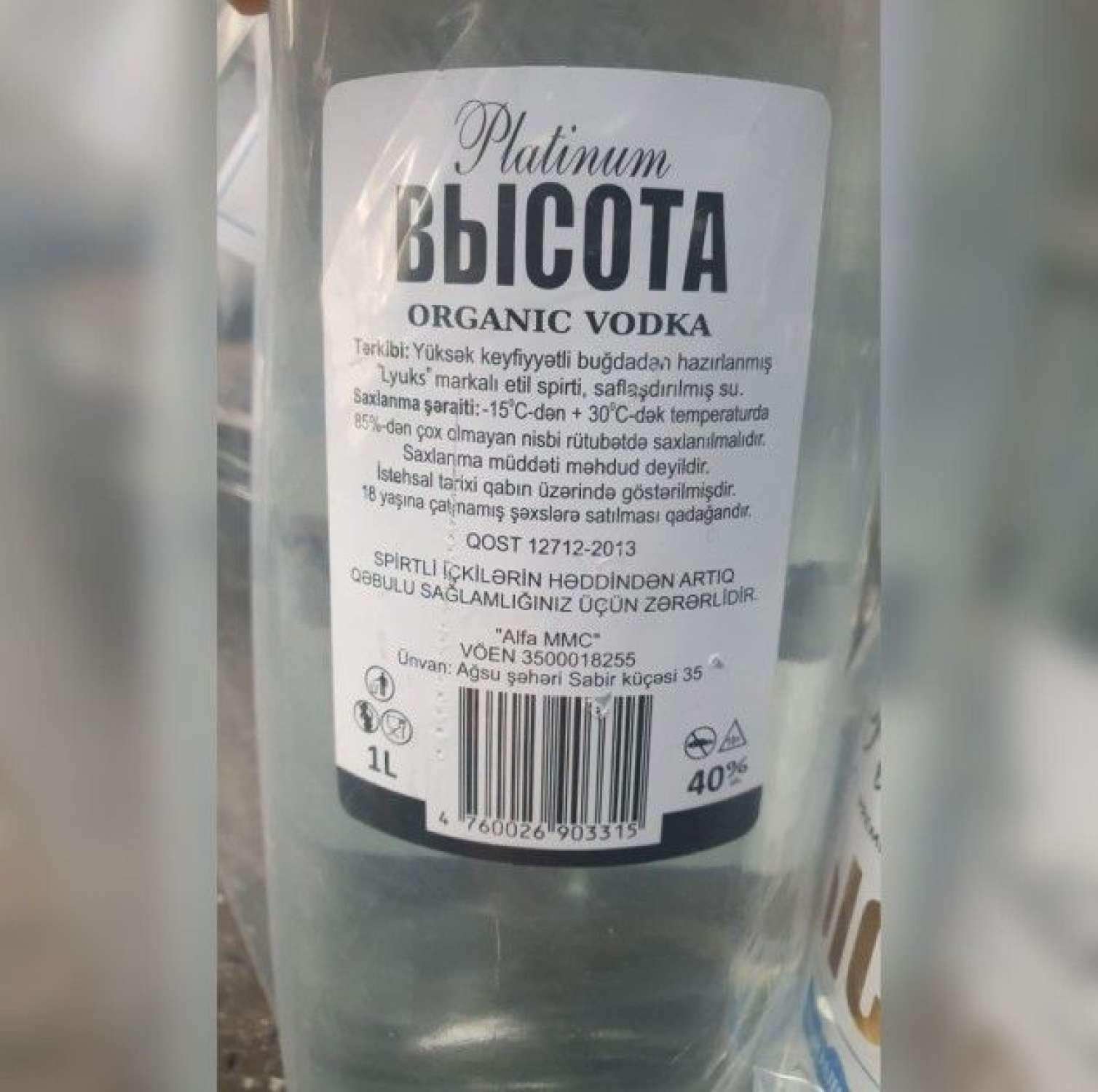 Agentliyin İnformasiya təminatı və innovativ həllər şöbəsindən verilən məlumata görə, yoxlama zamanı marketdə 6 ədəd 1 litrlik, 7 ədəd 0,7 litrlik və 8 ədəd 0,5 litrlik “Platinum Vısota” əmtəə nişanlı saxtalaşdırılmış araq aşkarlanıb.