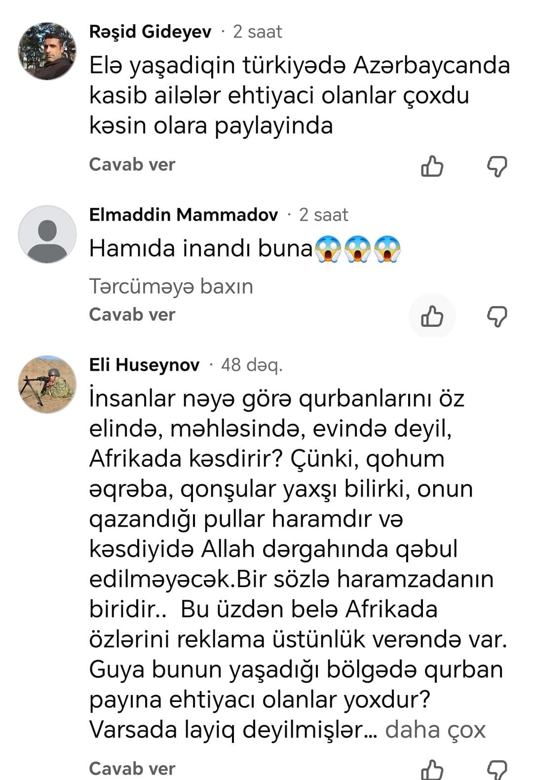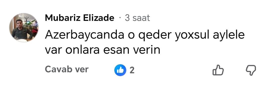 Tribuna.az xəbər verir ki, sosial şəbəkə istifadəçiləri müğənninin bu addımıə qiymətləndirsələr də, bildiriblər ki, bu addımı o öz ölkəsində atsaydı, daha yaxşı olardı. İstifadəçilər bildirib ki, Azərbaycanda da yardıma ehtiyacı olan insanlar kifayət qədərdir və müğənni qoç qurbanını elə öz ölkəsində, məhəlləsində kəsib paylaya bilərdi.