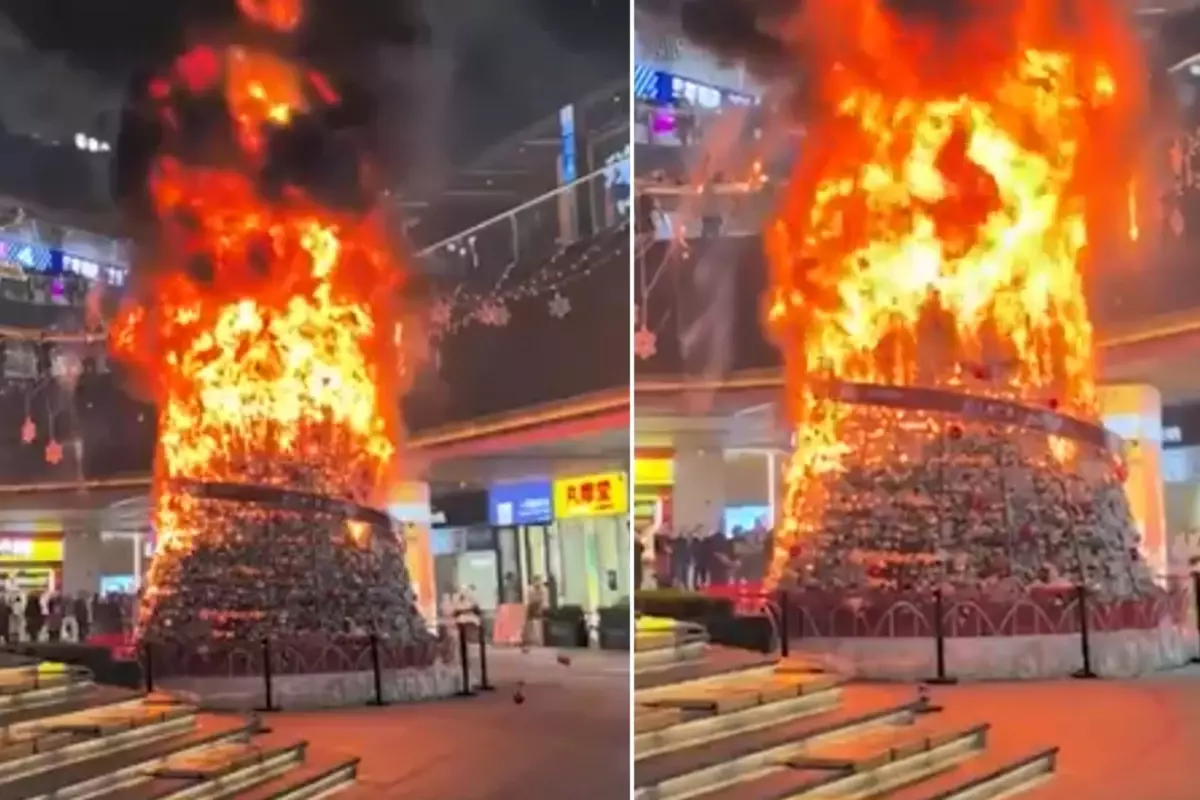 200.000-dən çox baxış toplayan video 25 dekabr 2024-cü ildə lentə alınıb və Çinin Çenqdu şəhərindəki Sanli Plazada baş verən yanğın zamanı 9 metr hündürlüyündə yolkanın alovlara büründüyünü göstərir.