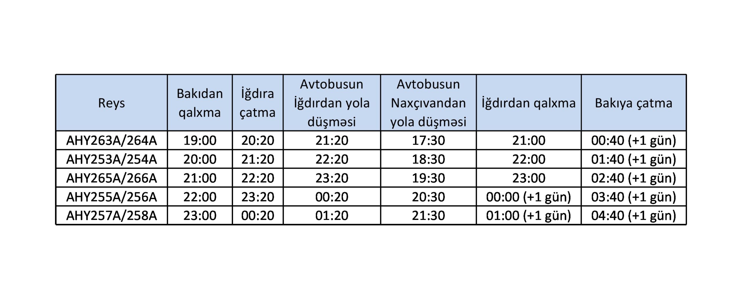 Martın 5-də Bakı-İğdır-Bakı marşrutu üzrə planlaşdırılmış uçuş cədvəli (bütün saatlar yerli vaxtla qeyd edilib):