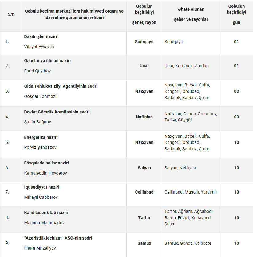 Tribuna.az xəbər verir ki, vətəndaşların qəbulu müəyyən edilmiş günlərdə saat 10:00-da başlayır.