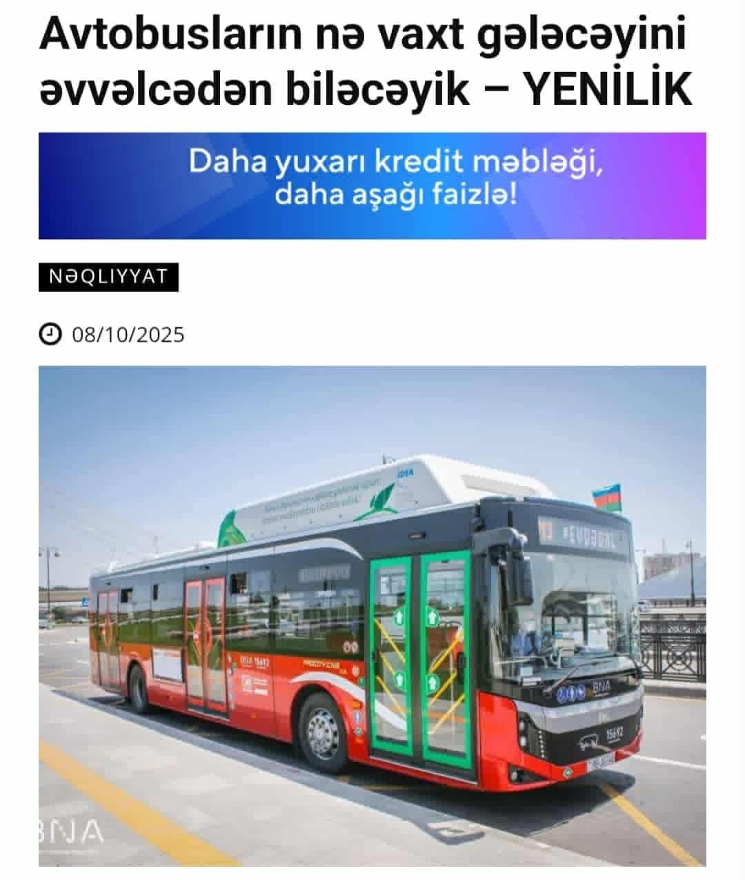 Bu gün AYNA rəsmi xəbər yayıb və bunu “yenilik” adlandırıb. Başlıq: “Avtobusların nə vaxt gələcəyini əvvəlcədən biləcəyik – YENİLİK”.