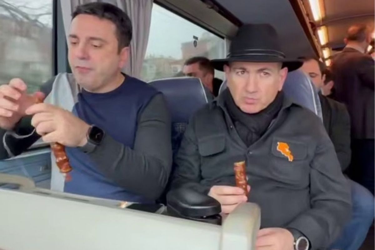 Tribuna.az bildirir ki, Paşinyan bu dəfə Ermənistan parlamentinin sədri Alen Simonyanla birlikdə avtobusda məşhur “Naxçıvan sucuğu” yeyib.