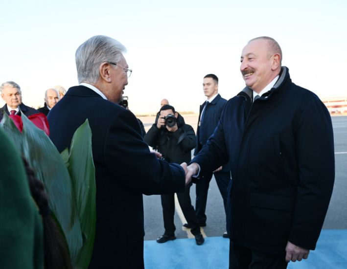 Tribuna.az xəbər verir ki, Astana şəhərinin Beynəlxalq Aeroportunda Azərbaycan Prezidentinin şərəfinə fəxri qarovul dəstəsi düzülüb.Dövlət başçısını Qazaxıstanın Prezidenti Kasım-Jomart Tokayev qarşılayıb.
