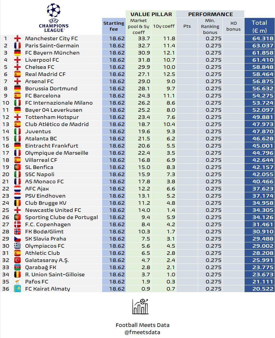 Bundan əlavə, qeyd edək ki, qrup mərhələsində hər qələbə üçün 2,8 milyon avro, heç-heçə üçün isə 930 min avro bonus qazanmaq imkanı var. Əlavə olaraq, komanda pley-off mərhələsinə yüksəlsə, gəlirləri qat-qat arta bilər.