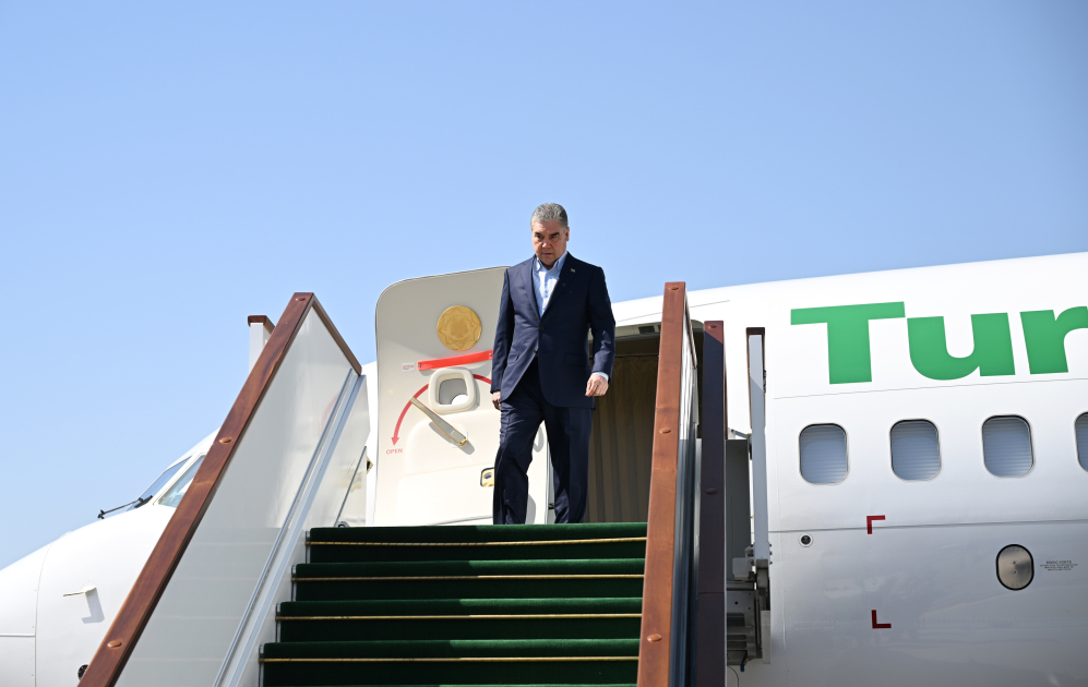 Qurbanqulu Berdiməhəmmədovu Azərbaycan Prezidenti İlham Əliyev qarşıladı.