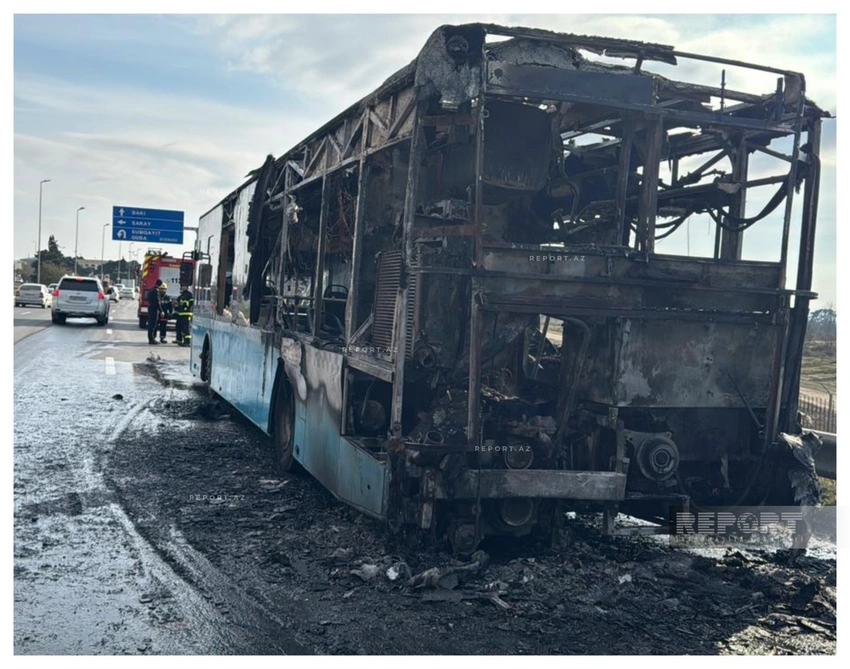 Saray postunun yaxınlığında 9 saylı marşrut avtobusu yanır.