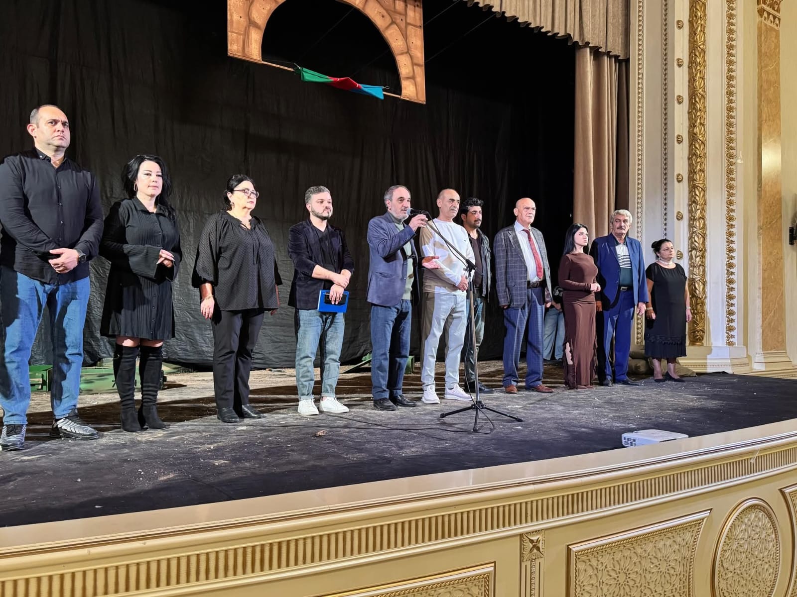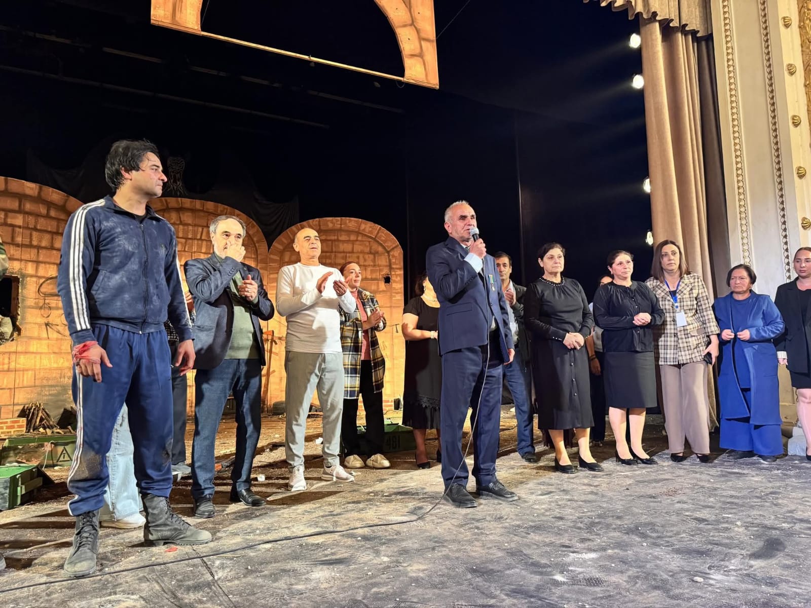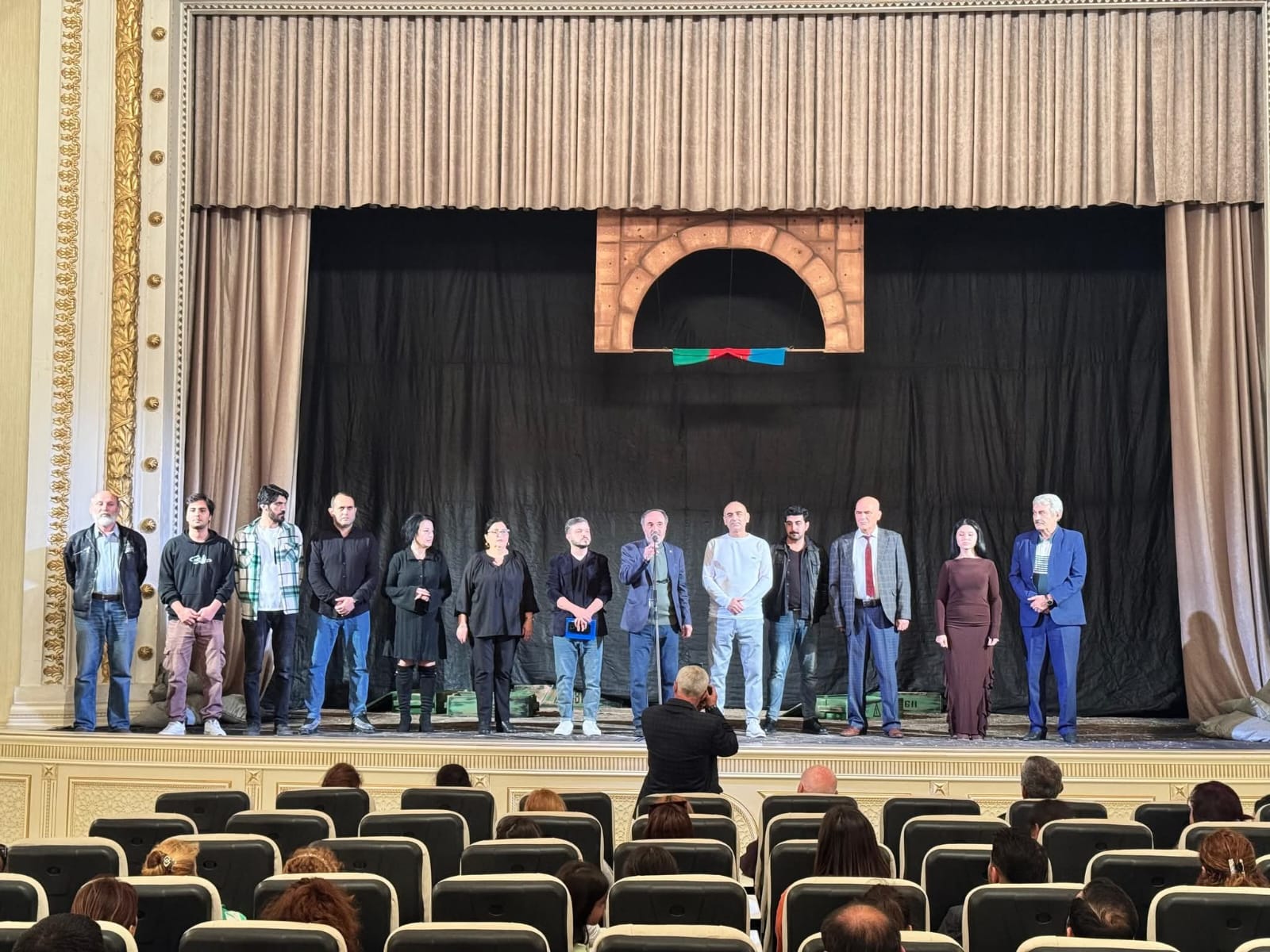 Tamaşadan öncə Qarabağ müharibəsində şəhid olmuş Vətən övladlarının əziz xatirəsi bir dəqiqəlik sükutla yad olunub. Ardınca teatrın baş rejissoru, xalq artisti Firudin Məhərrəmov çıxış edərək 44 günlük Vətən müharibəsinin Azərbaycanın müstəqillik tarixində oynadığı roldan bəhs edib, həmçinin teatrın yaradıcılıq yoluna dair qısa məlumat verib.