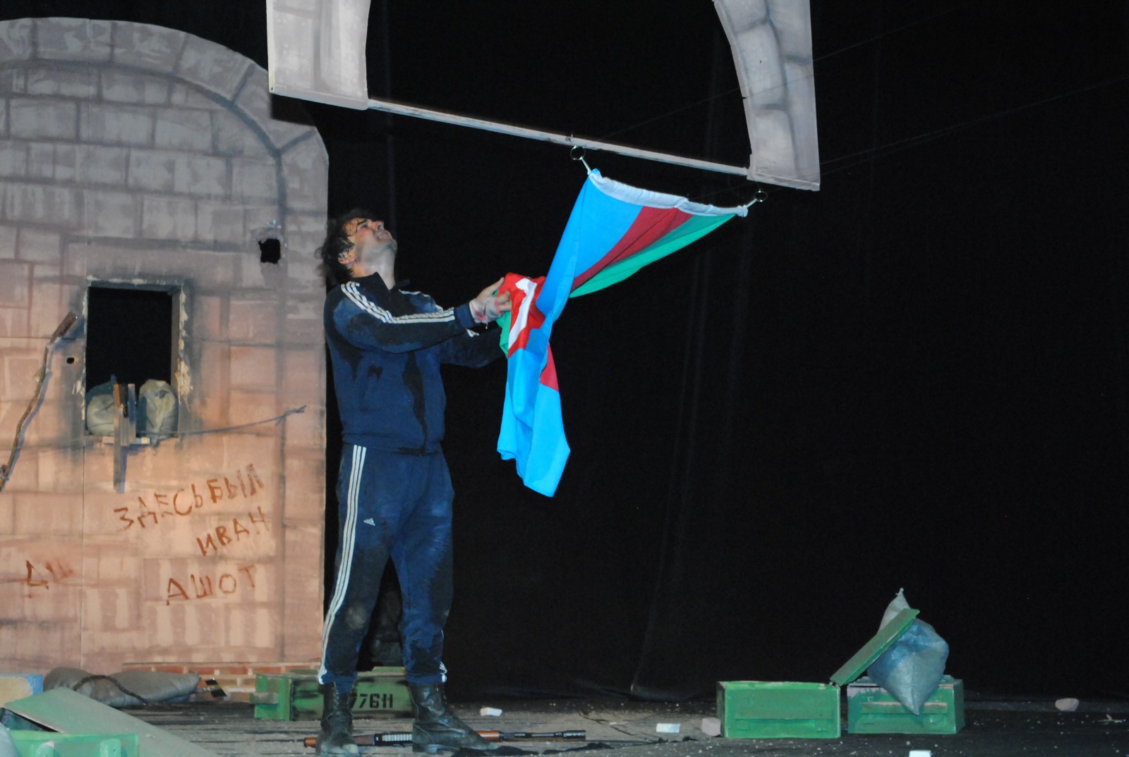 Məlumat üçün bildirək ki, səhnə əsərində Natiq Qasımovun igidliyindən bəhs edilir. Altı döyüş yoldaşını itirdikdən sonra beş gün ərzində təkbaşına müdafiə etdiyi alban kilsəsində mühasirəyə düşən qəhrəmanımız, sonadək ermənilərə müqavimət göstərir və yalnız Xocalıda girov götürülmüş 22 dinc sakinin həyatını xilas etmək üçün təslim olmağa razılaşır. O, hətta təslim olarkən belə Azərbaycan bayrağını düşmənə vermir. Natiq Qasımov əsirlikdə işgəncə ilə qətlə yetirilib.