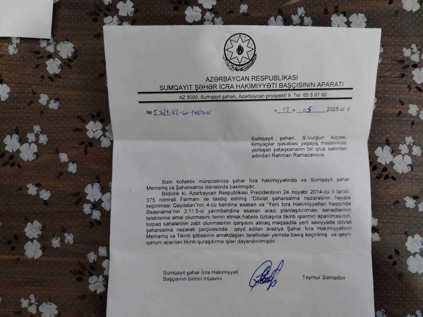Tribuna.az xəbər verir ki, sakinlərin sözlərinə görə, poçt/rabitə xidmətləri üçün nəzərdə tutulmuş ərazini şəhid atası Şakir Qasımov adlı şəxs həmin sahədə qanunsuz zəbt (fərdi ev və ya şirniyyat sexi tikintisi məqsədi ilə istifadəyə cəhd) etmişdir. Hansı ki, həmin şəxs əvvəllər məktəb və gediş-gəliş üçün nəzərdə tutulmuş yolu da zəbt etməyə səy göstərmişdir. Lakin, vətəndaşların etirazı ilə qanun çərçivəsində icazə verilməmişdir. 13.05.2025-ci il tarixində kollektiv müraciətlərə əsasən, Sumqayıt şəhər Memarlıq və Şəhərsalma idarəsindən baxış keçirilmiş və qeyri-qanuni aparılan tikinti-quraşdırılması işləri dayandırılmışdır.