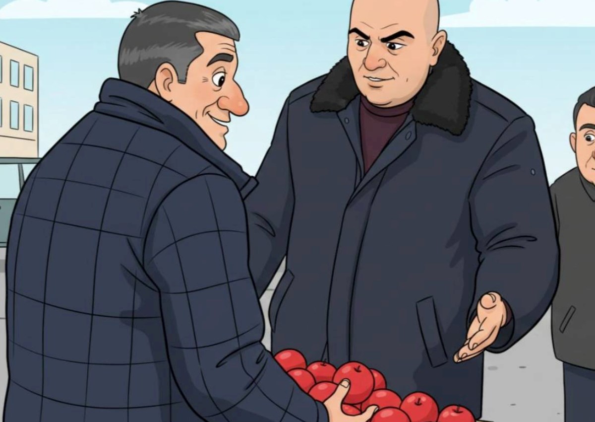 Səhnəcikdə Sumqayıt Şəhər İcra Hakimiyyətinin əməkdaşının küçə ticarəti ilə məşğul olan şəxslərə qarşı kobud rəftarı və malları (almaları) zorla müsadirə etməsi satirik dildə tənqid olunub. Aktyorlar hadisənin real görüntülərindəki dialoqları və icra məmurunun davranışlarını yumoristik, həm də düşündürücü şəkildə canlandırıblar.