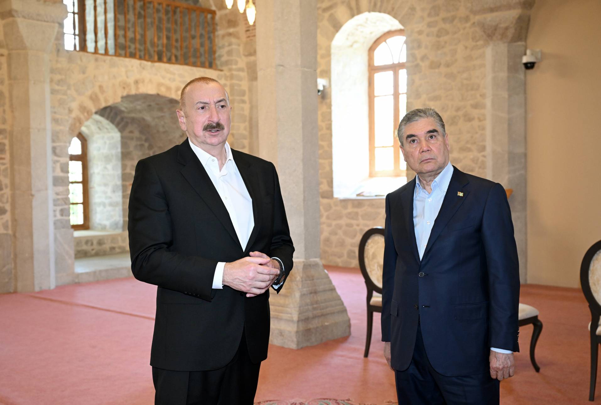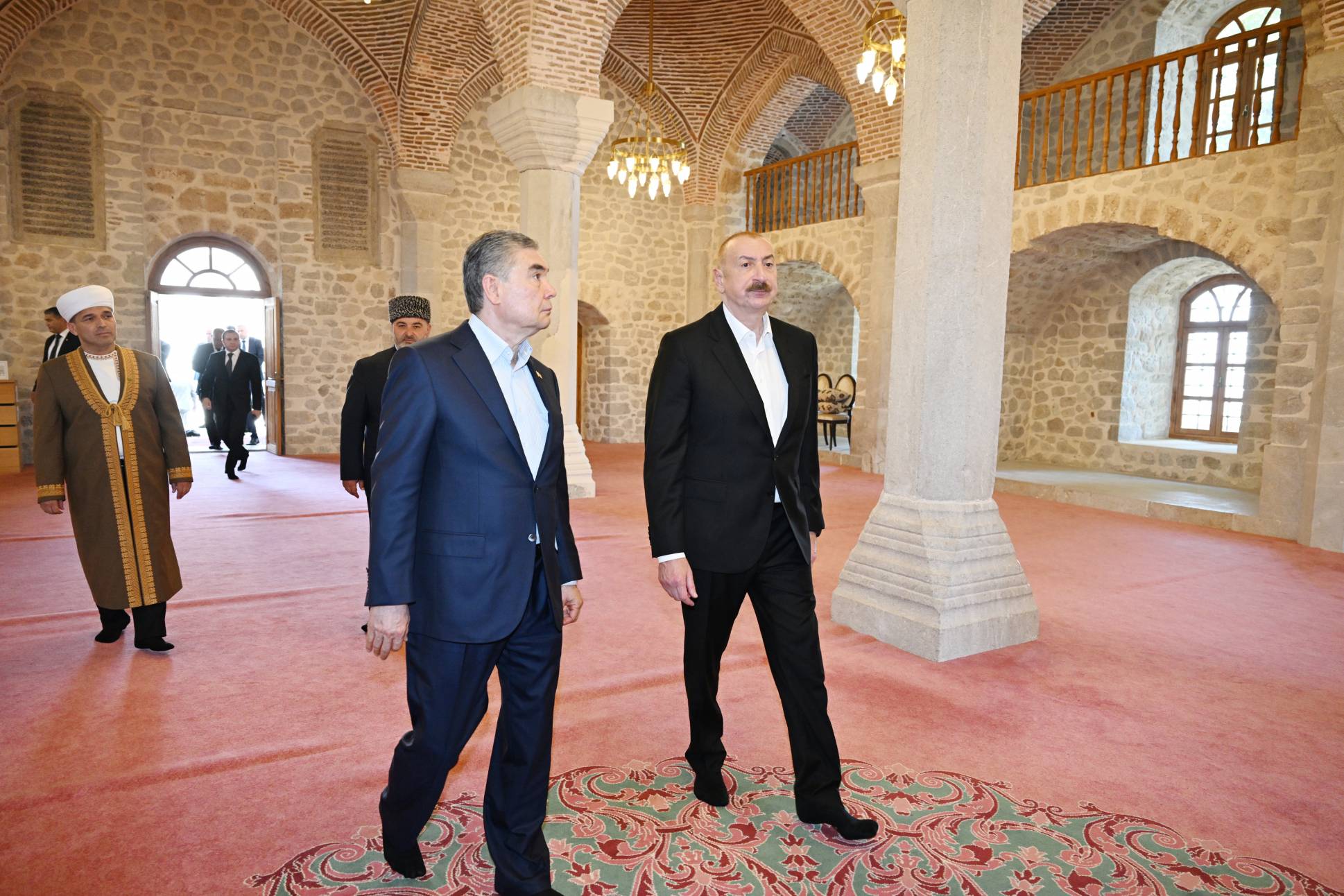 Azərbaycan Prezidenti İlham Əliyev və Türkmənistan Xalq Məsləhətinin sədri Qurbanqulu Berdiməhəmmədov Şuşada Yuxarı Gövhər Ağa məscidini ziyarət ediblər.