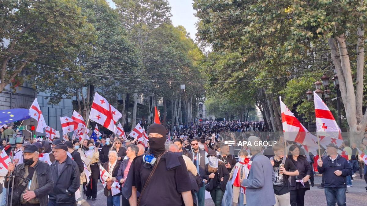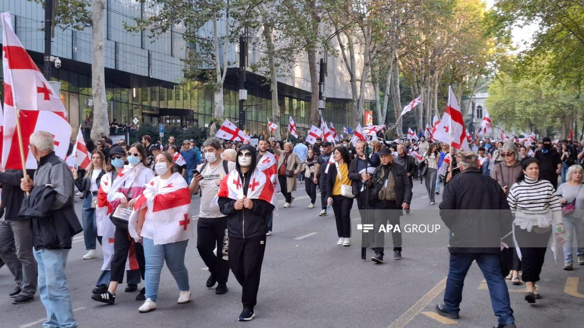 Mitinqə bəzi bölgələrdən də iştirakçılar qatılıb. Tbilisinin bir neçə hissəsindən yürüşlə aksiyaya qoşulanlar da var. Rustaveli prospektində avtomobillərin hərəkəti məhdudlaşdırılıb.