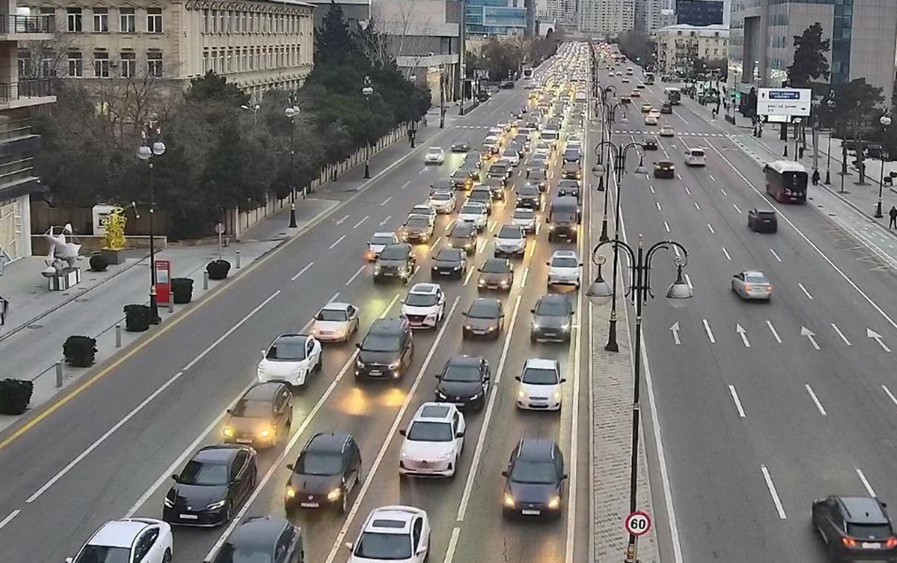 Bakının bir sıra yollarında tıxac yaranıb.