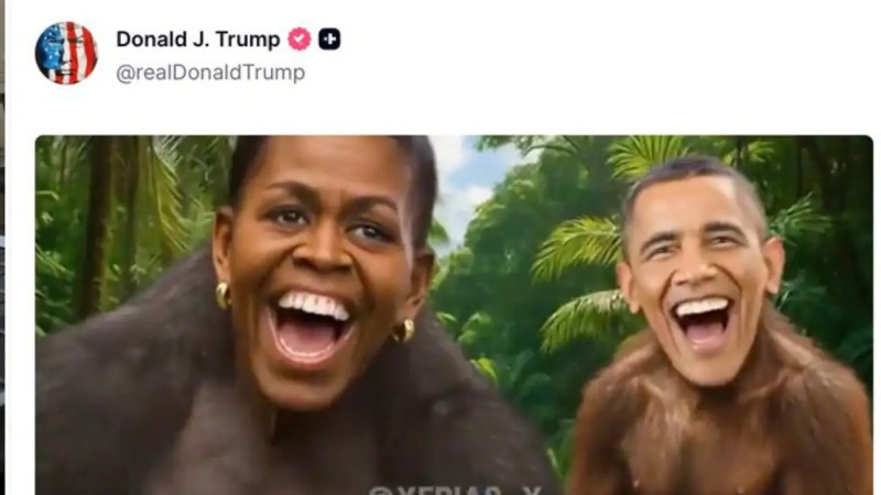 ABŞ Prezidenti Donald Tramp sosial mediada keçmiş prezident Barak Obama və həyat yoldaşı Mişel Obamanın meymun obrazında təqdim olunduğu video paylaşdıqdan sonra demokratların kəskin tənqidinə məruz qalıb.