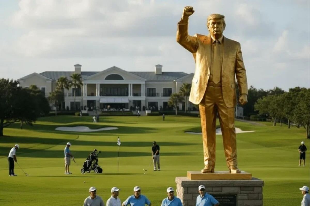 ABŞ prezidenti Donald Trampın Florida ştatında yerləşən Trump National Doral qolf kurortunda onun qızıl örtüklü bürüncdən hazırlanmış heykəli quraşdırılıb.