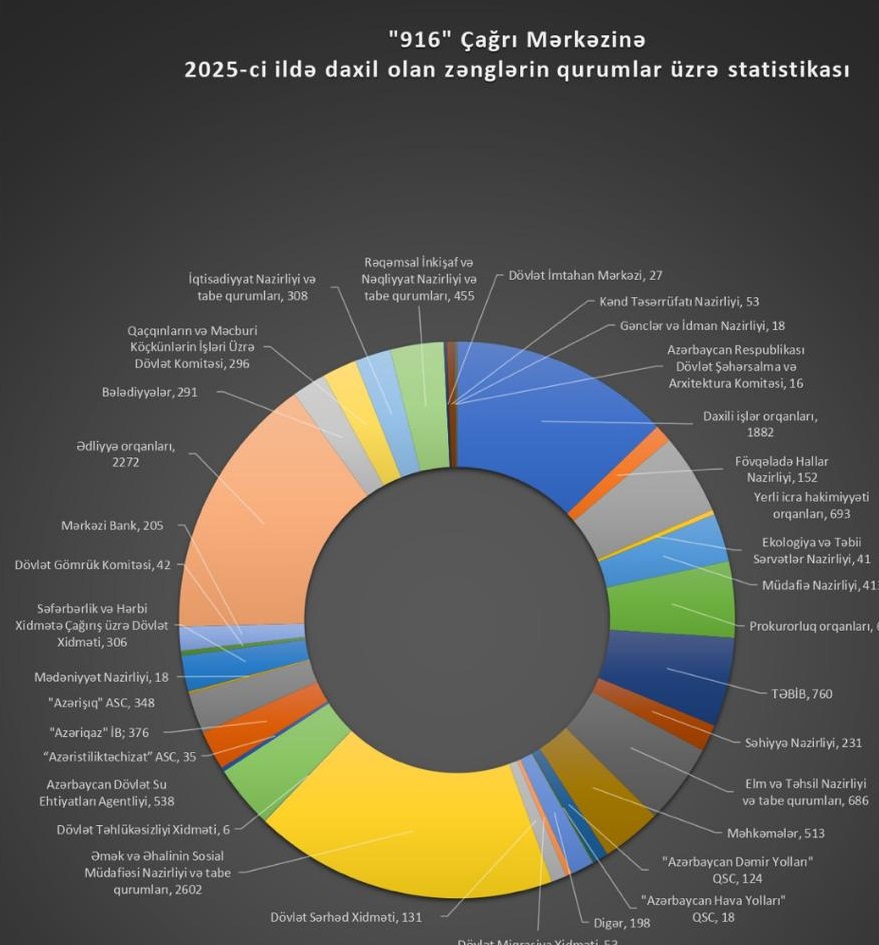 2025-ci il ərzində Ombudsmanın 916 Çağrı Mərkəzinə edilmiş müraciətlərin dövlət orqanları üzrə statistikası məlum olub.