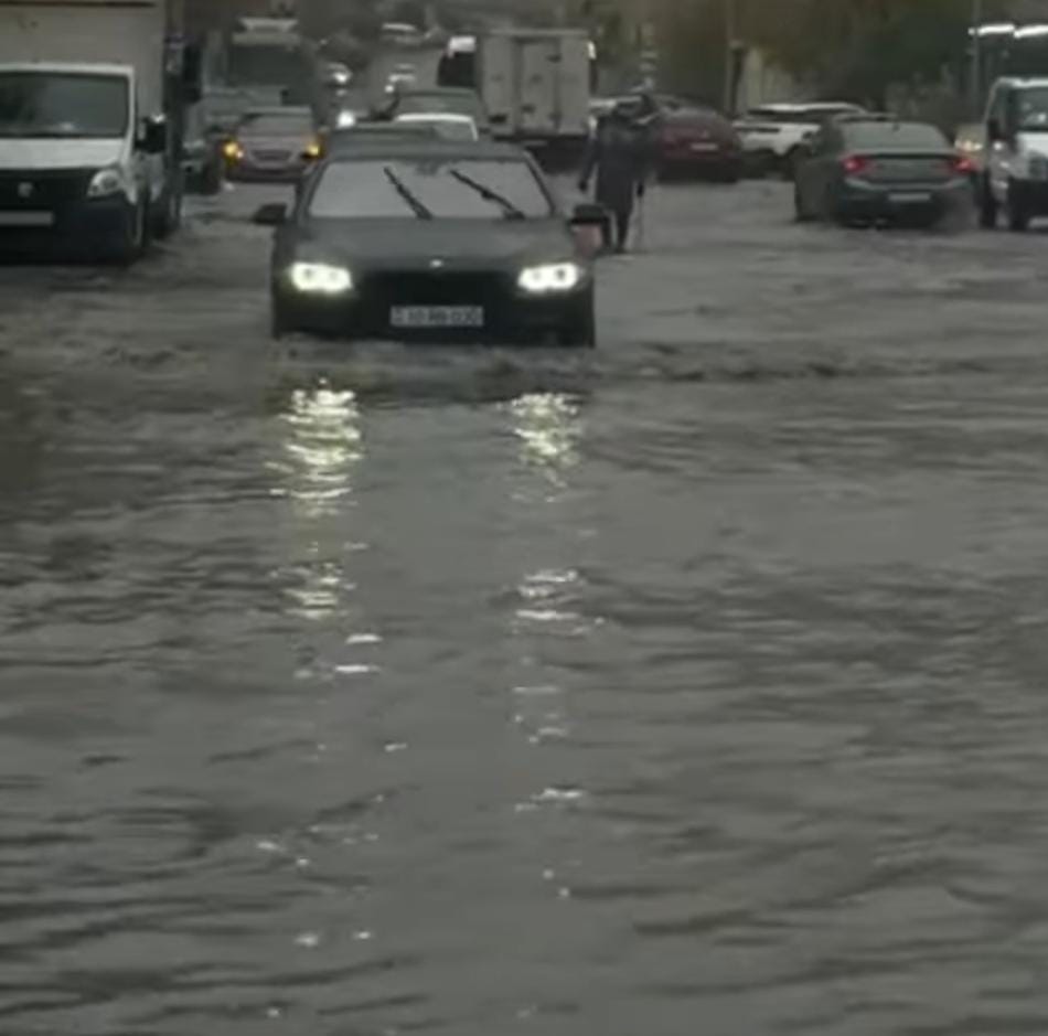 Dünən axşamdan başlayan və səhərə qədər davam edən yağış səbəbindən yenə də bəzi küçələri su basıb.